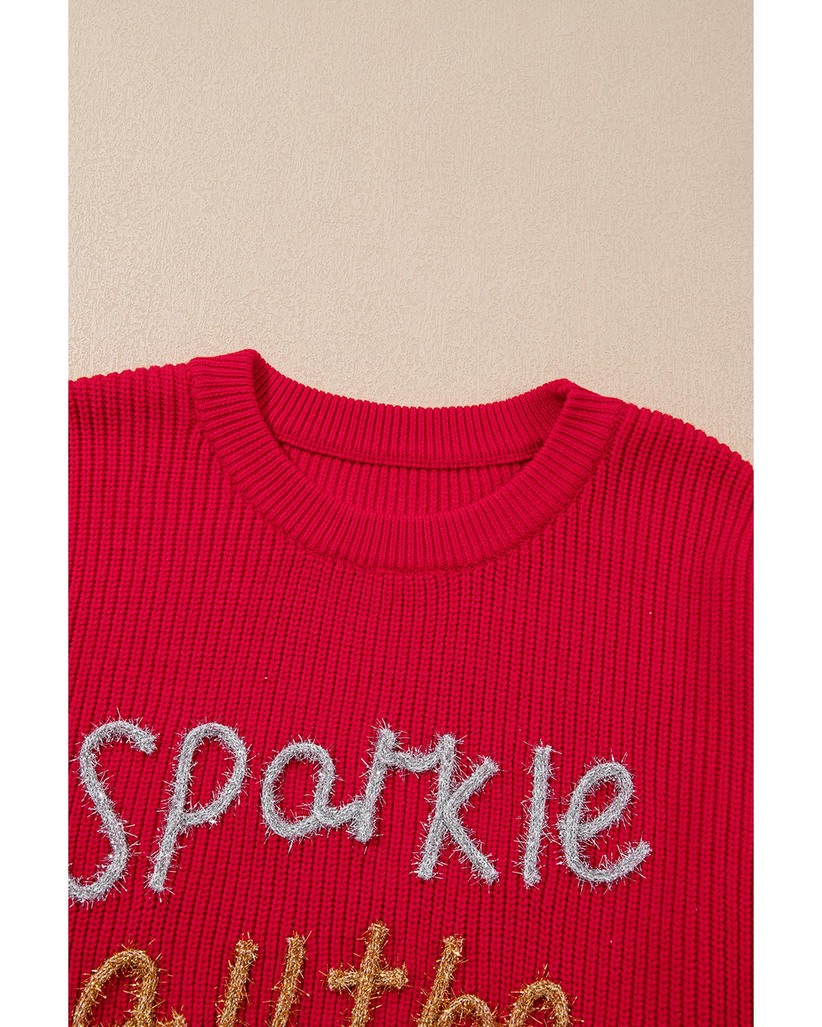 - Racing Red Sparkle All The Way Tinsel Crew Neck Plus Size Sweater