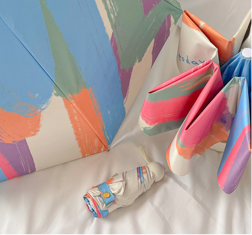 Rainbow Curve Mini 5-Fold Umbrella – Portable, Anti-UV, Black Glue Coating