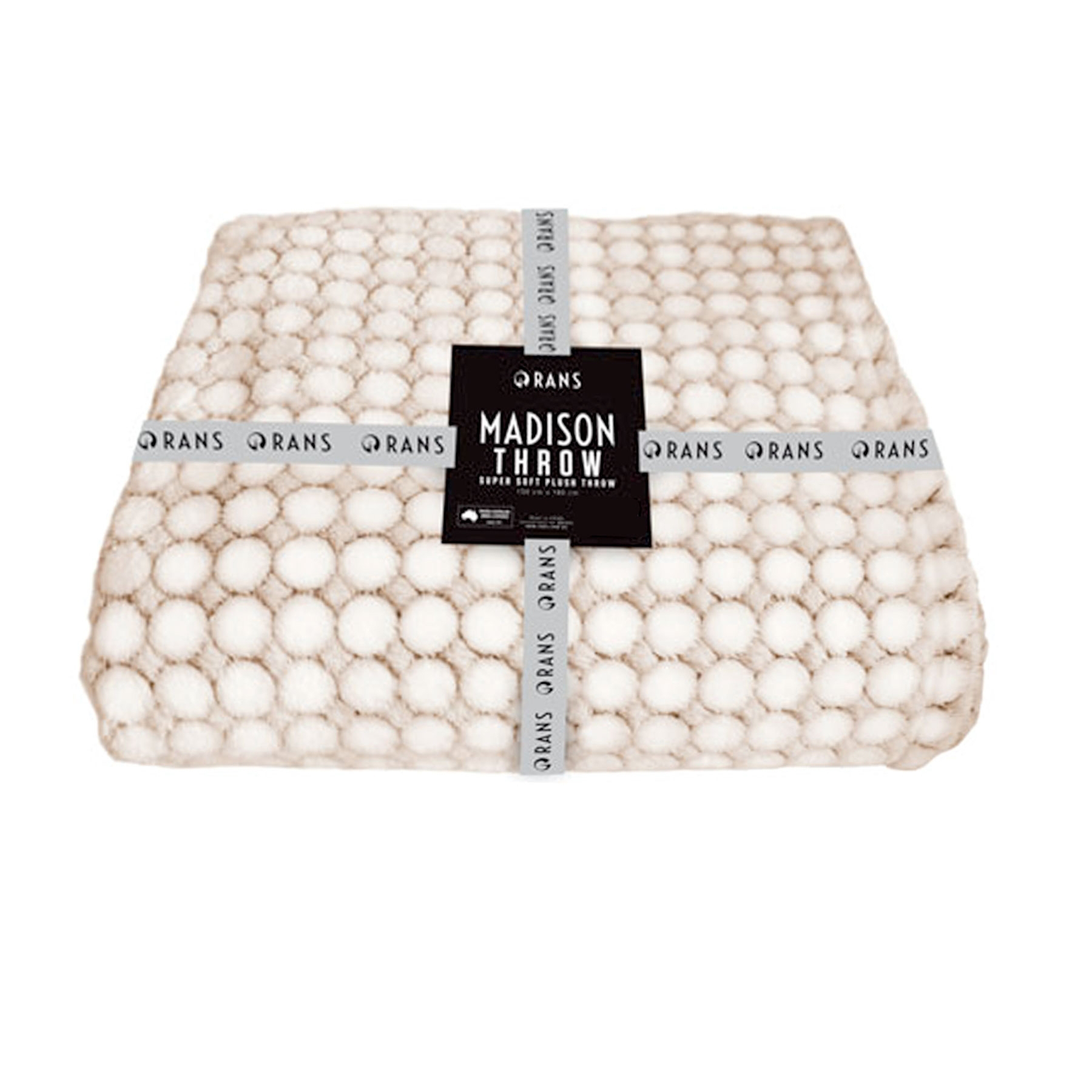 Wrap yourself up with our new exceptional soft and luxurious Madison Super Soft Plush Throw 130 x 180 cm by Rans. With elegant shimmer, they are warm and cosy, yet breathable. They have inviting feel and complement any décor. Perfect for snuggling on any chair, sofa or bed. Luxurious to use for all year around. It’s modern gift packaging makes a fantastic gift for that hard to please special someone. Features Polka dots design is soft neutral tones. Made from soft touch Polyester fabric.