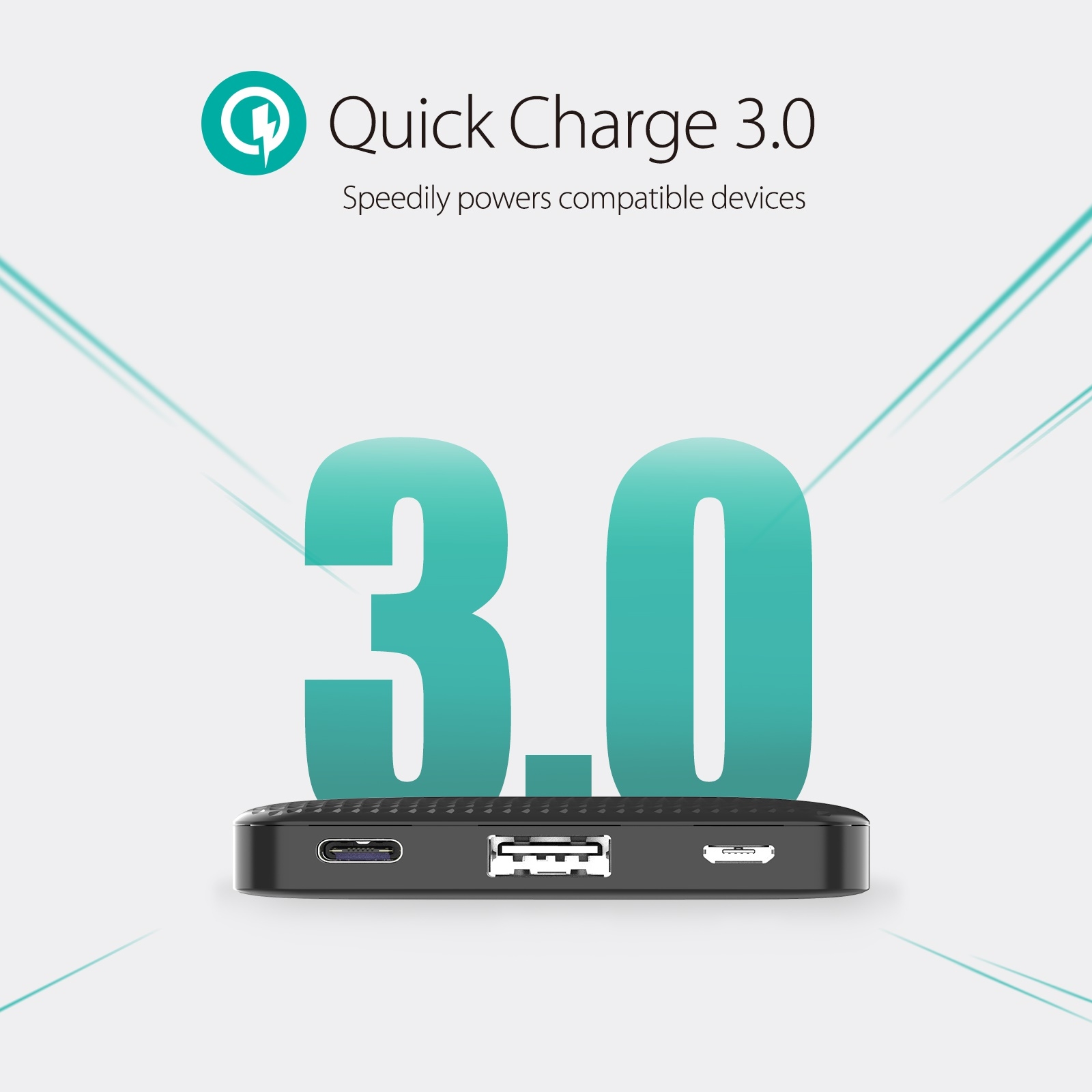 The RAVPower 10000mAh PD 18W QC3.0 Power Bank is slim and compact without any compromise for speed. 18 output boasts support for PD power and QC3.0, to ensure the quickest and safest charge possible for your devices. This power bank has a MicroUSB input, USB-A output and a USB-C input/output port.