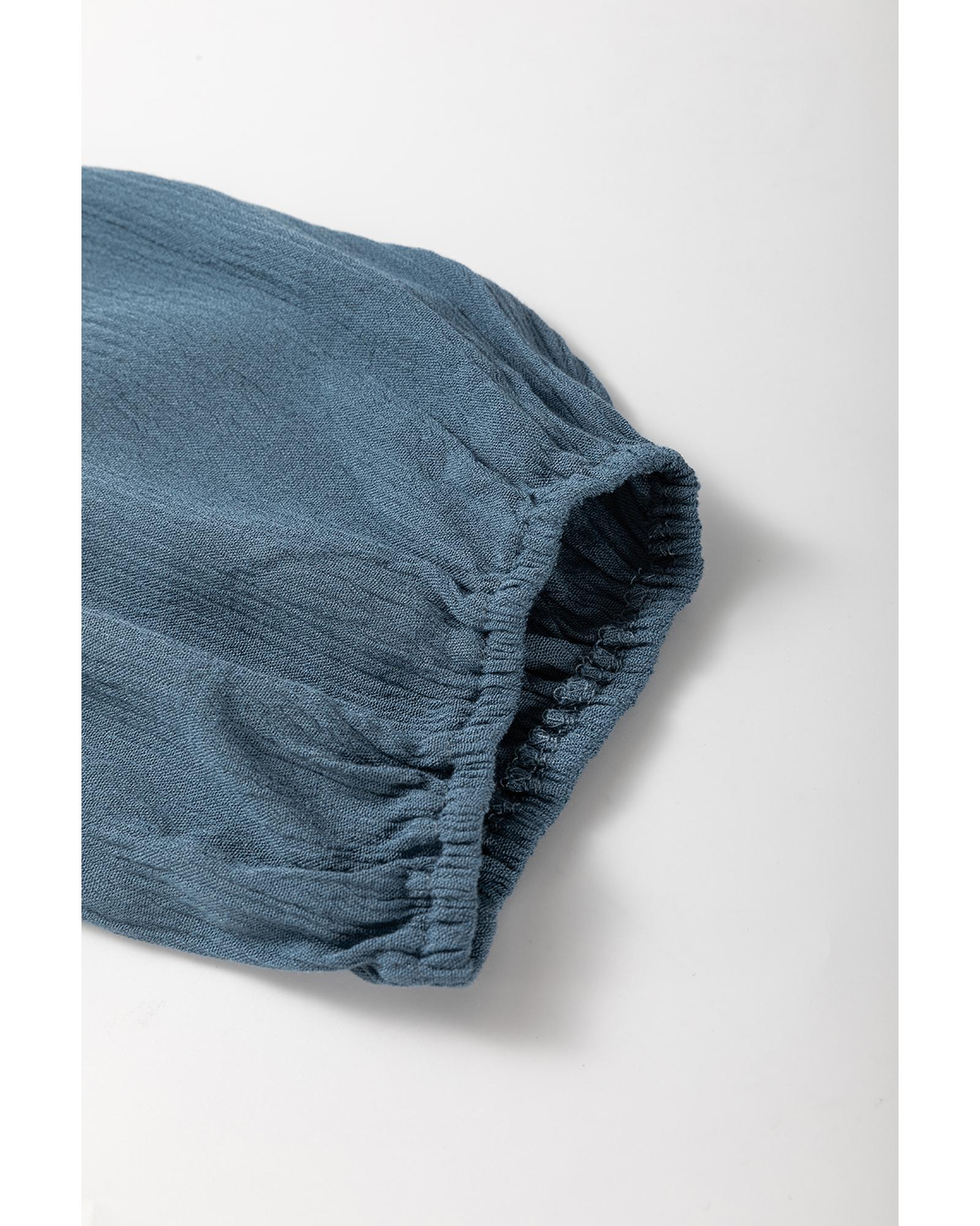 Real Teal Frilled Neckline 3/4 Sleeve Layered Ruched Mini Dress – XL