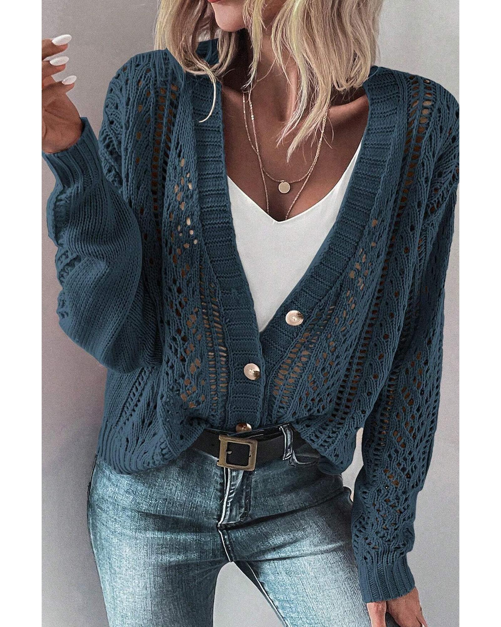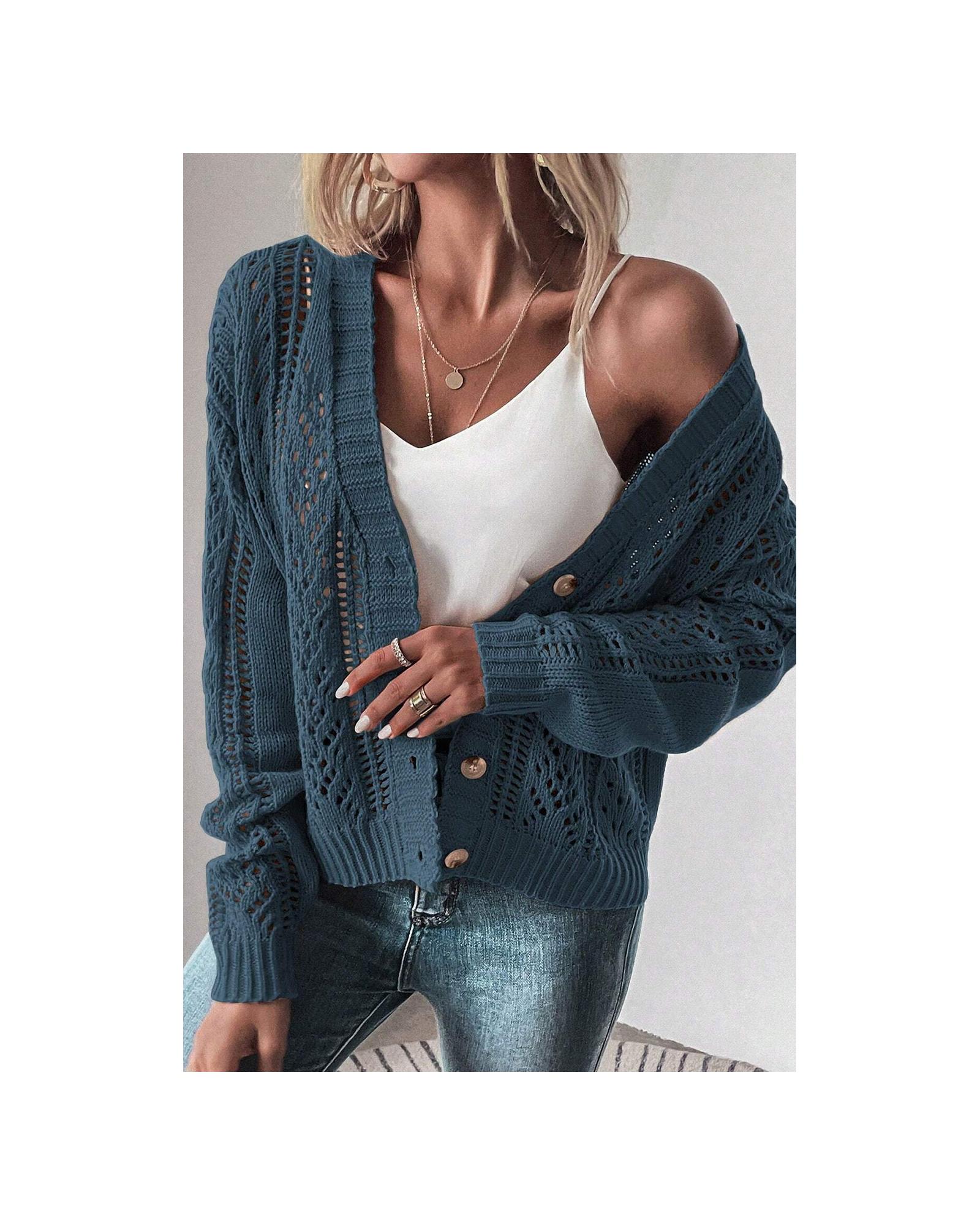 Real Teal Open Knit Drop Shoulder Sweater Cardigan – 2XL