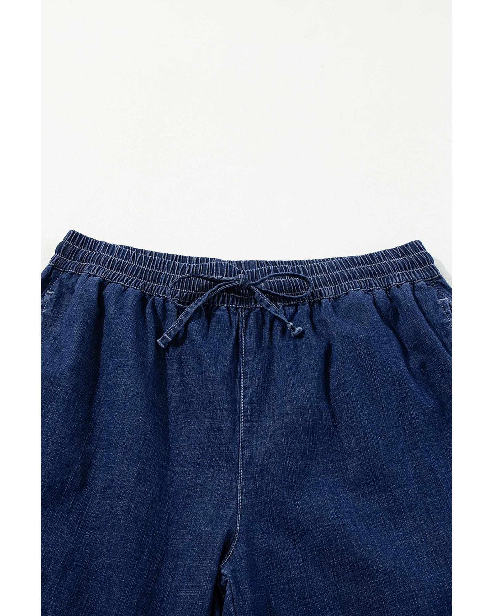 Real Teal Plus Size Drawstring High Waist Wide Leg Casual Jeans – 1X