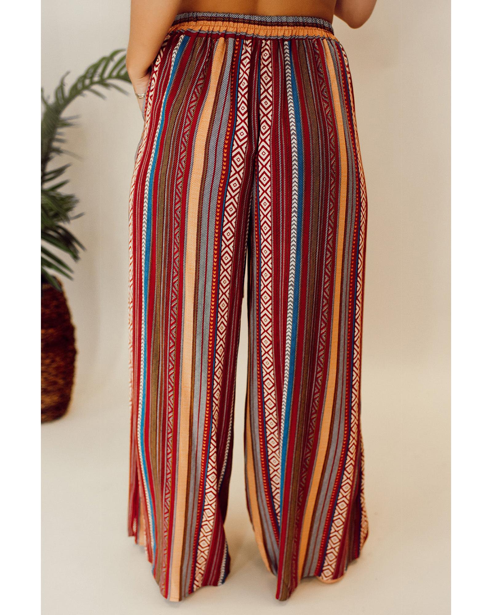 Red Boho Ethnic Striped Print Tie Waist Wide Leg Pants – M