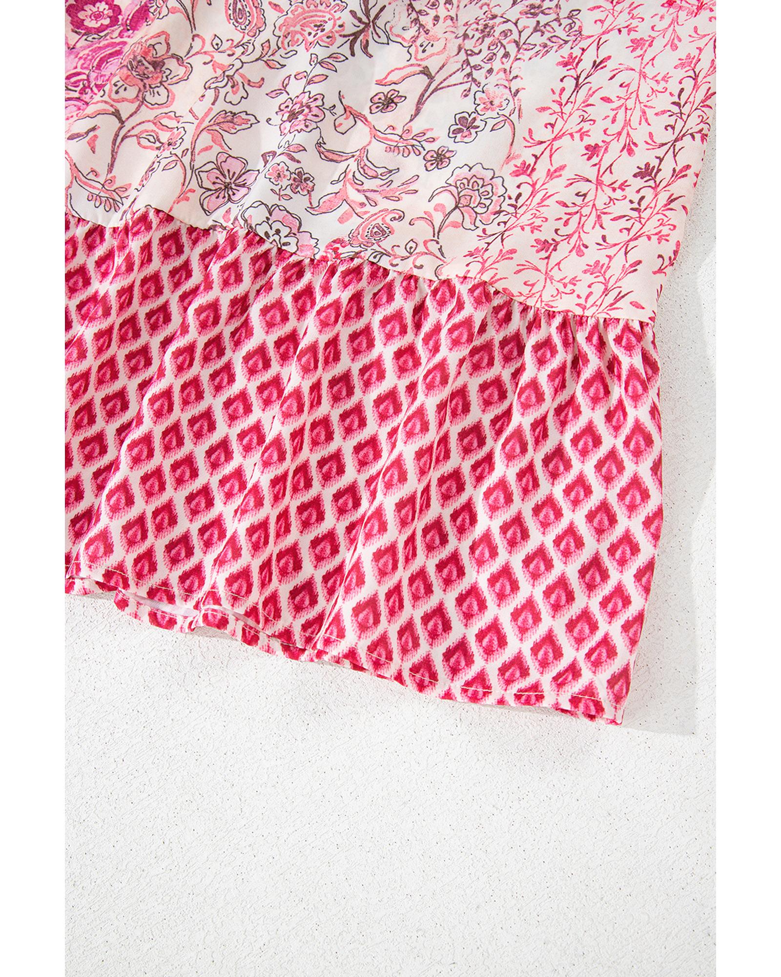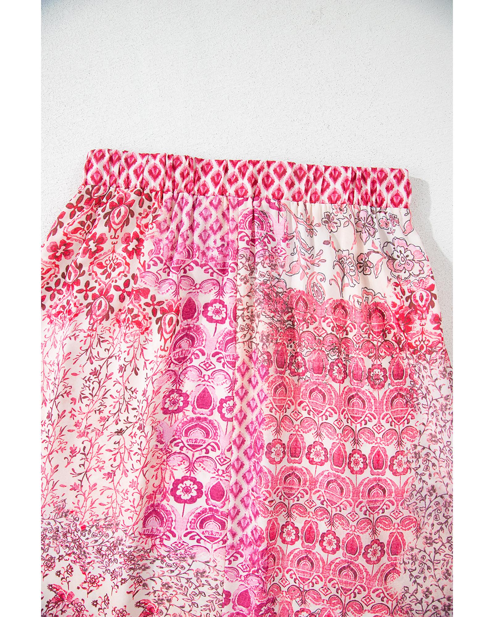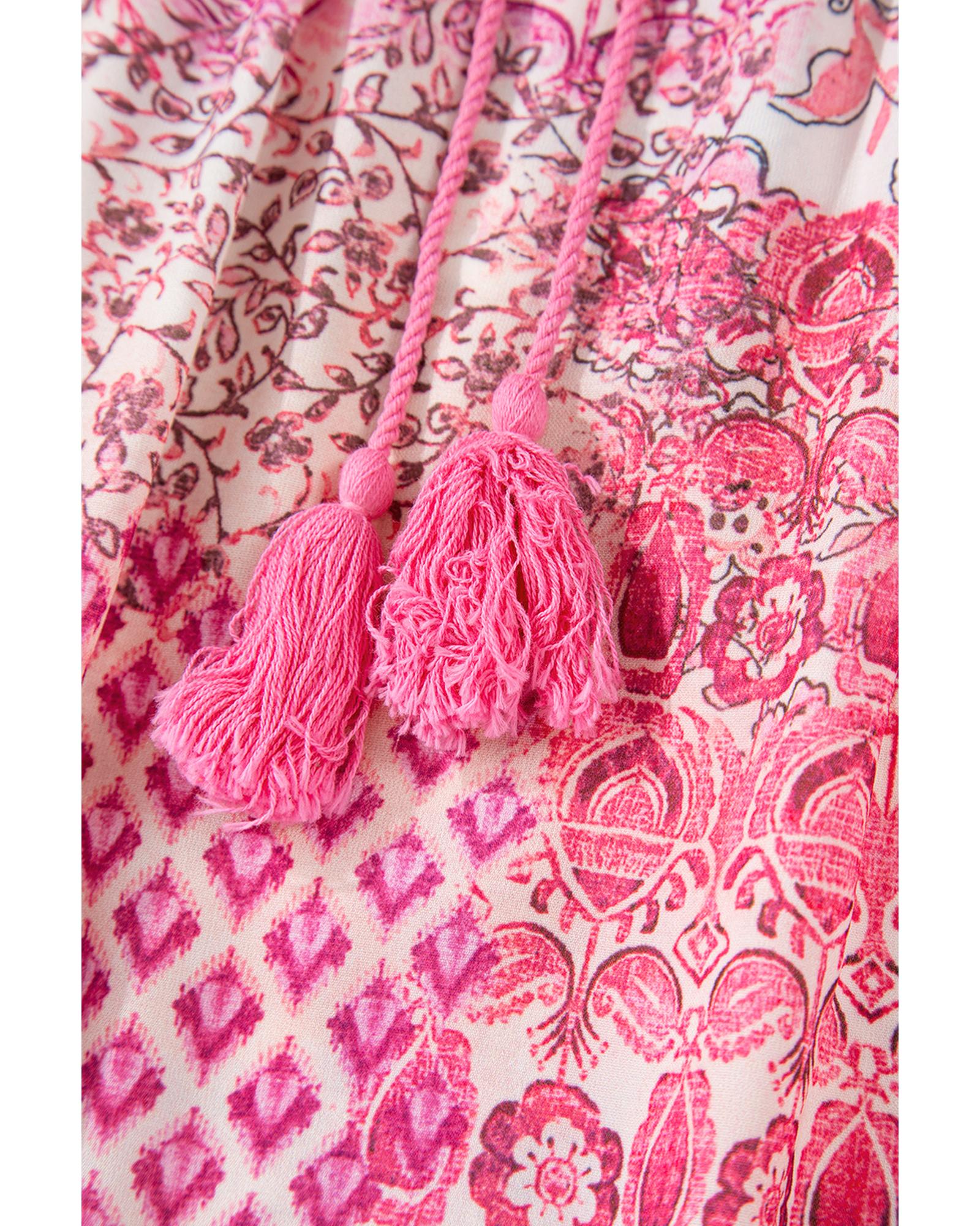 Red Boho Pattern Print Tassel Drawstring High Waist Maxi Dress – M