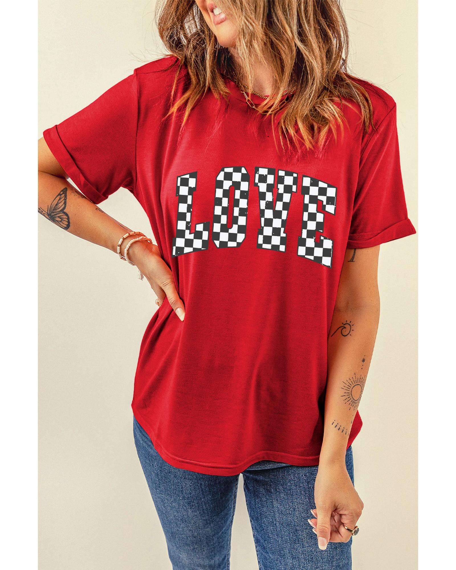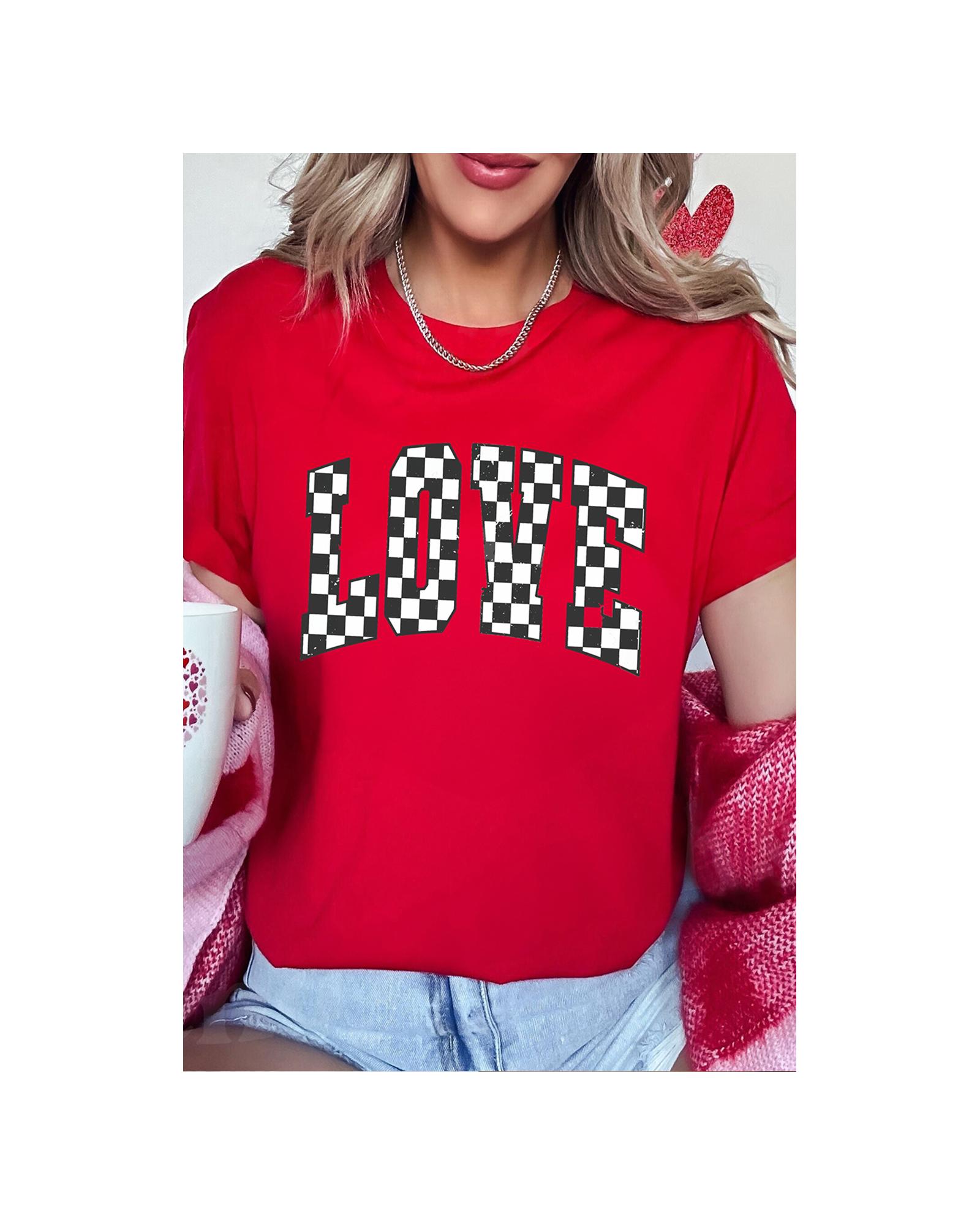 Red Checkered LOVE Letter Graphic Valentines T Shirt – 3XL