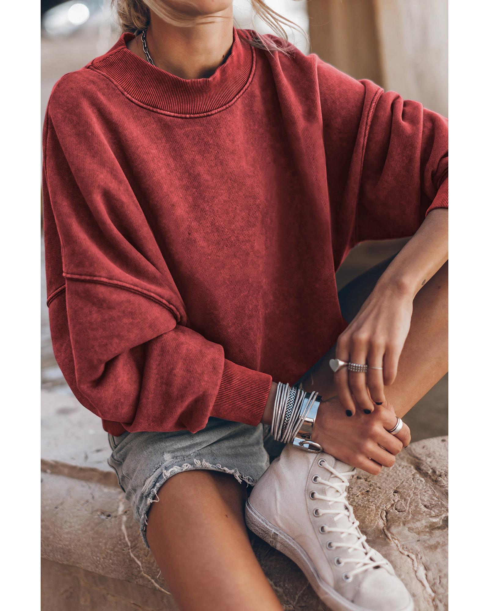 Red Dahlia Drop Shoulder Crew Neck Pullover Sweatshirt – M