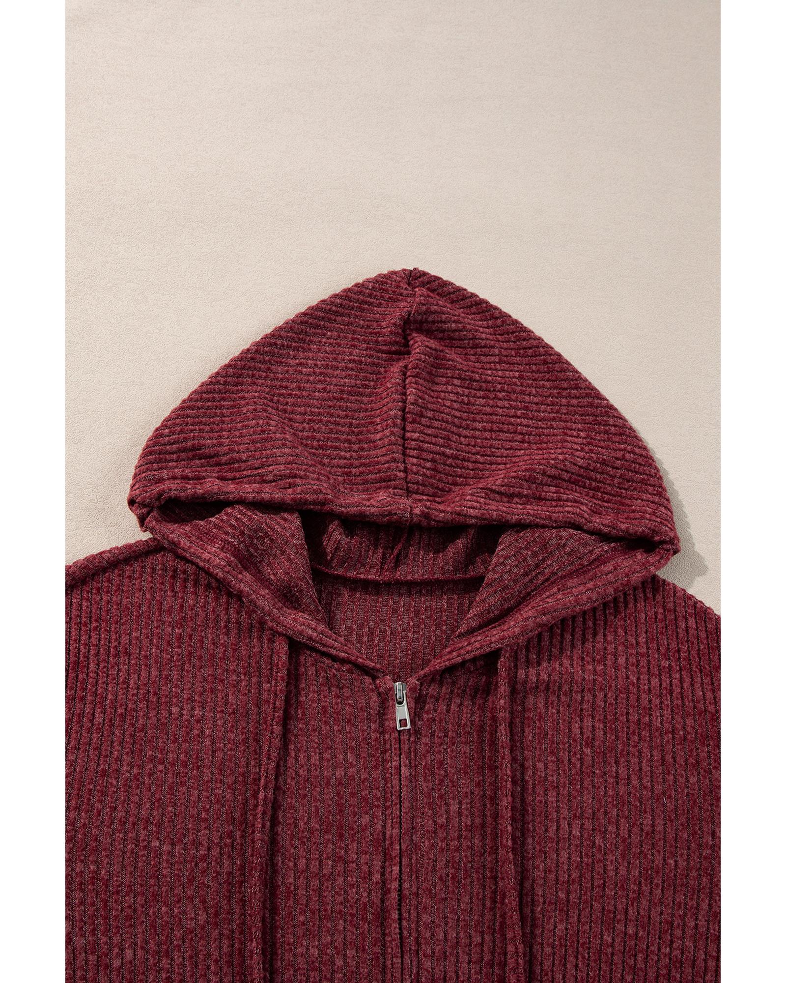 Red Dahlia Ribbed Zip Up Front Drawstring Hoodie – XL