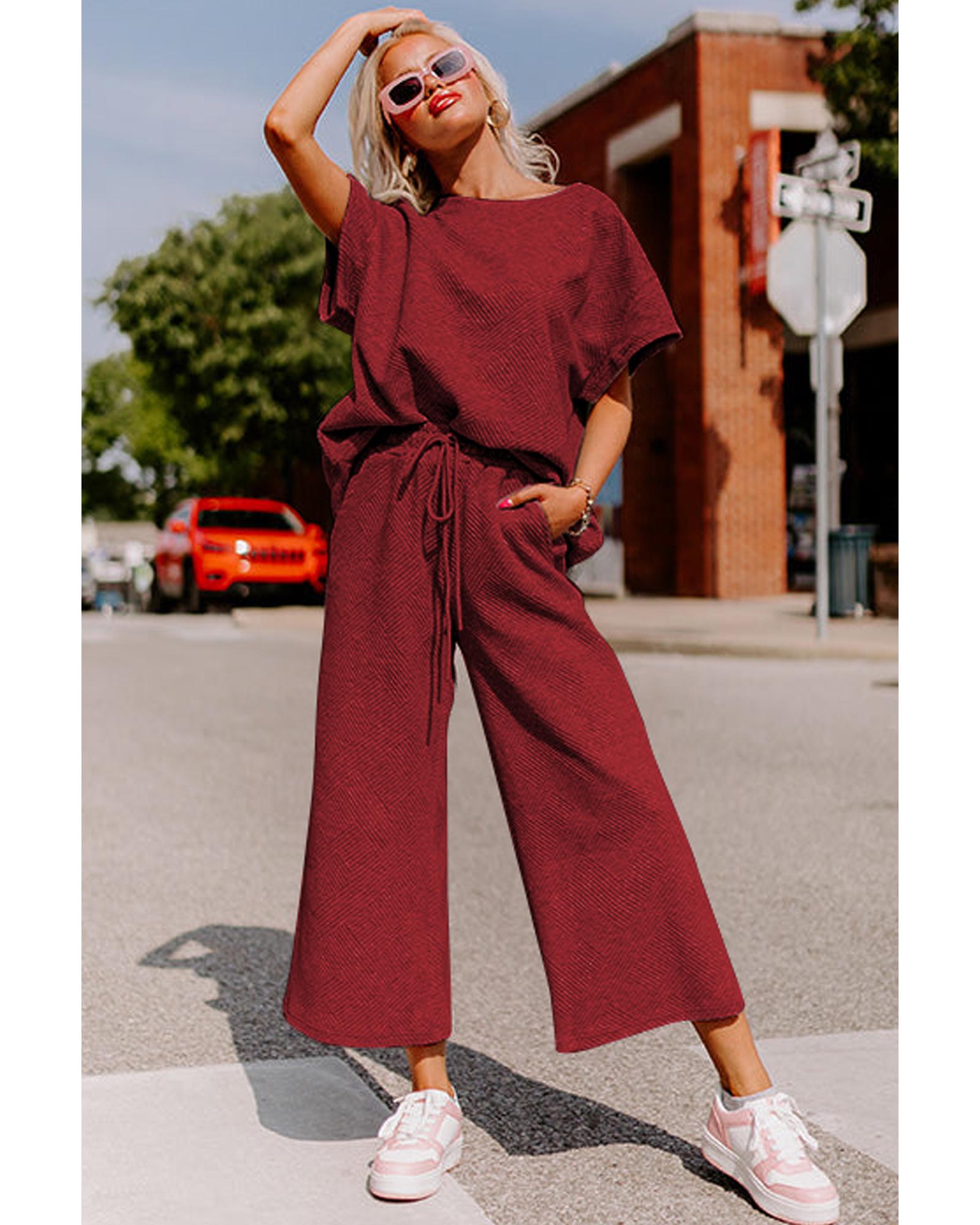 Red Dahlia Textured Loose Fit T Shirt and Drawstring Pants Set – S