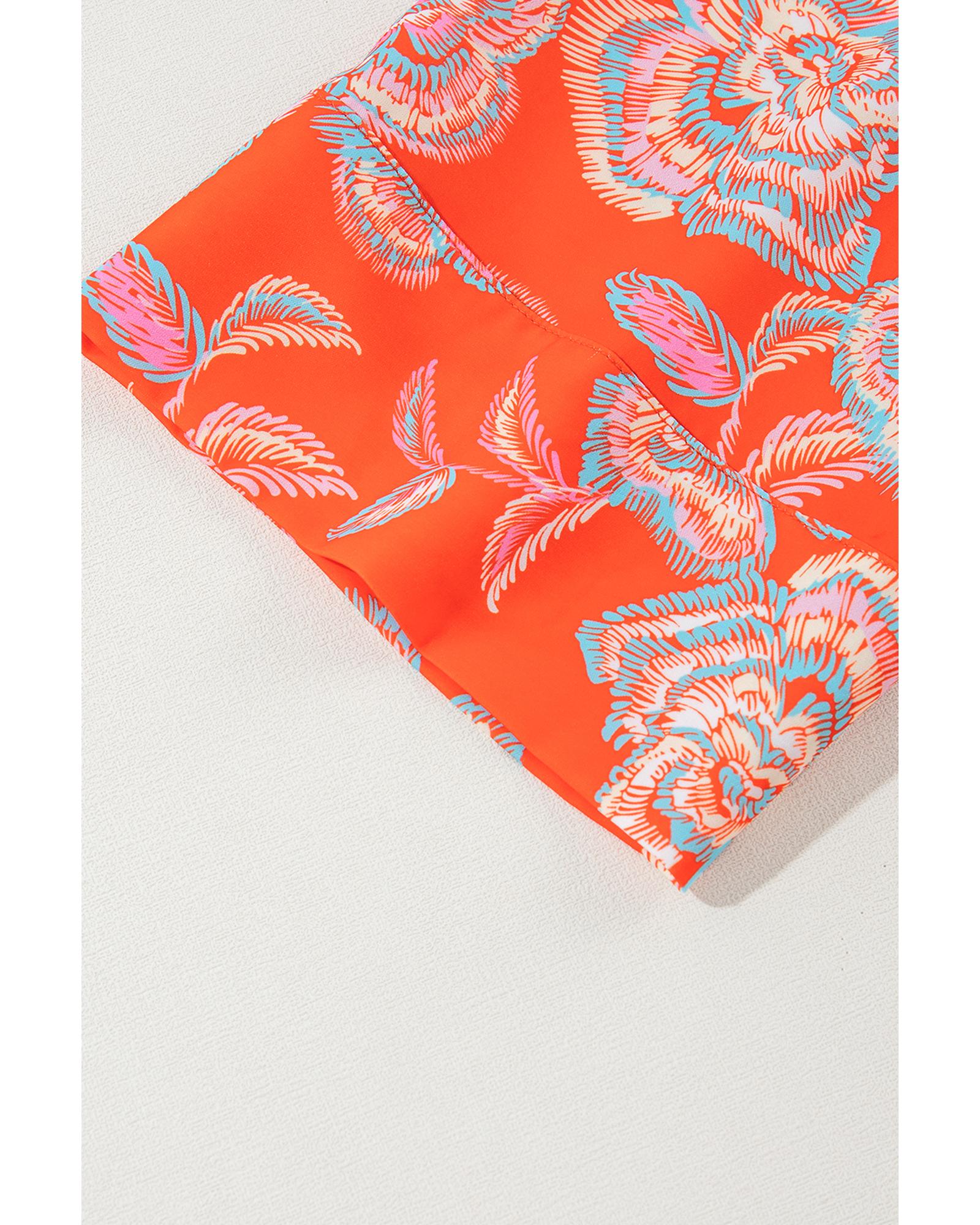 Red Floral Print Lapel Collar Loose Shirt Mini Dress – XL