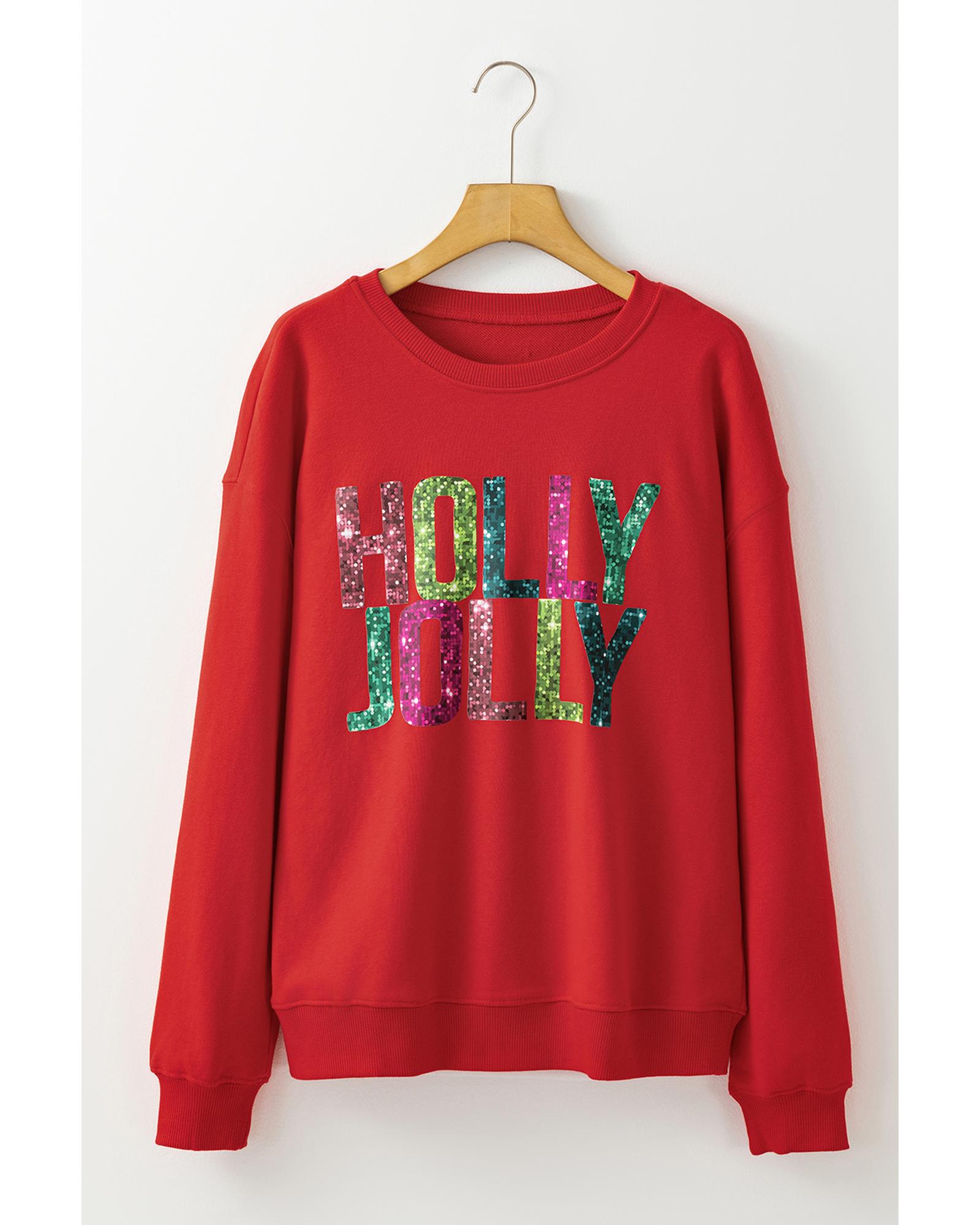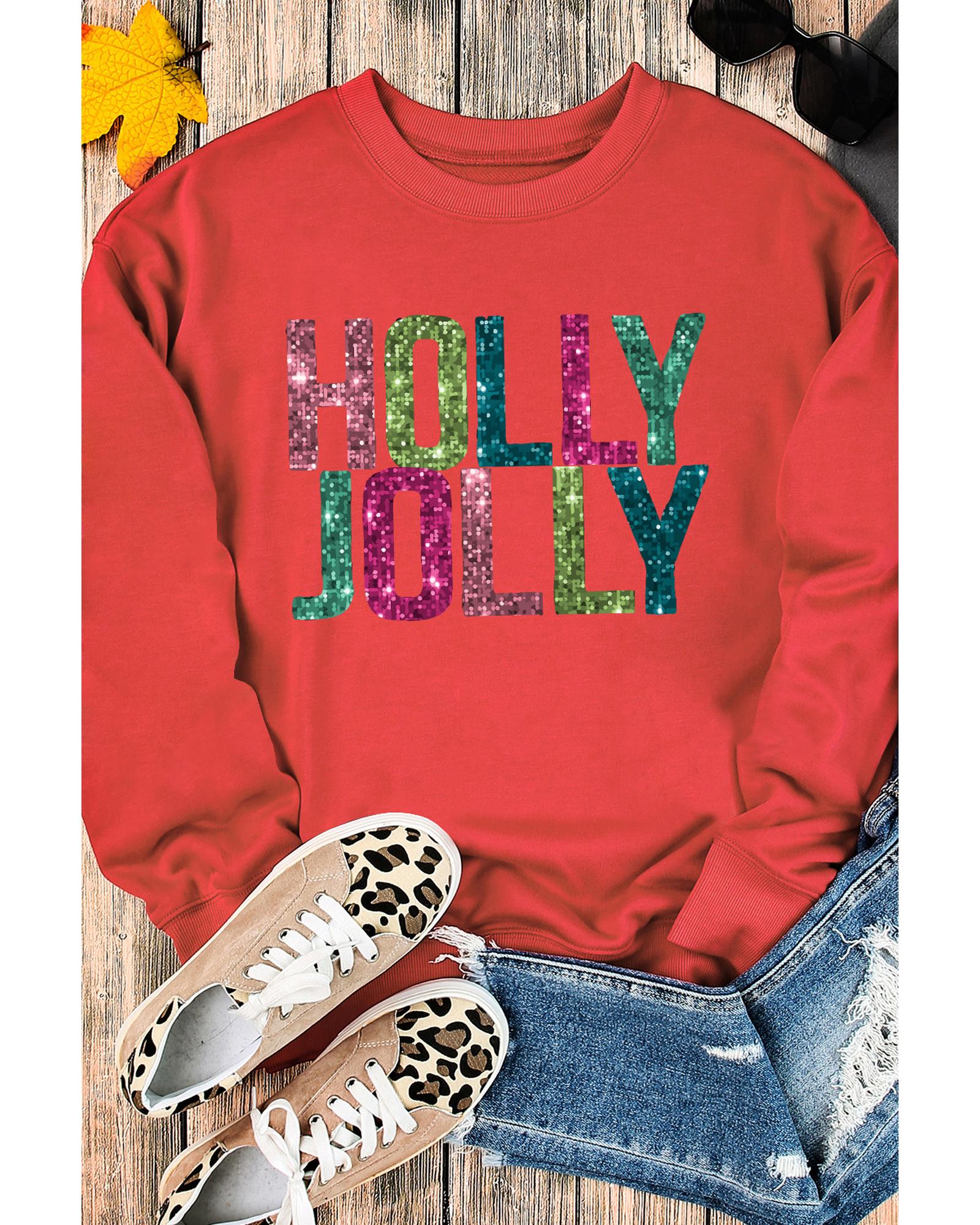 Red Heat Transfer HOLLY JOLLY Printing Christmas Pullover Sweatshirt – XL