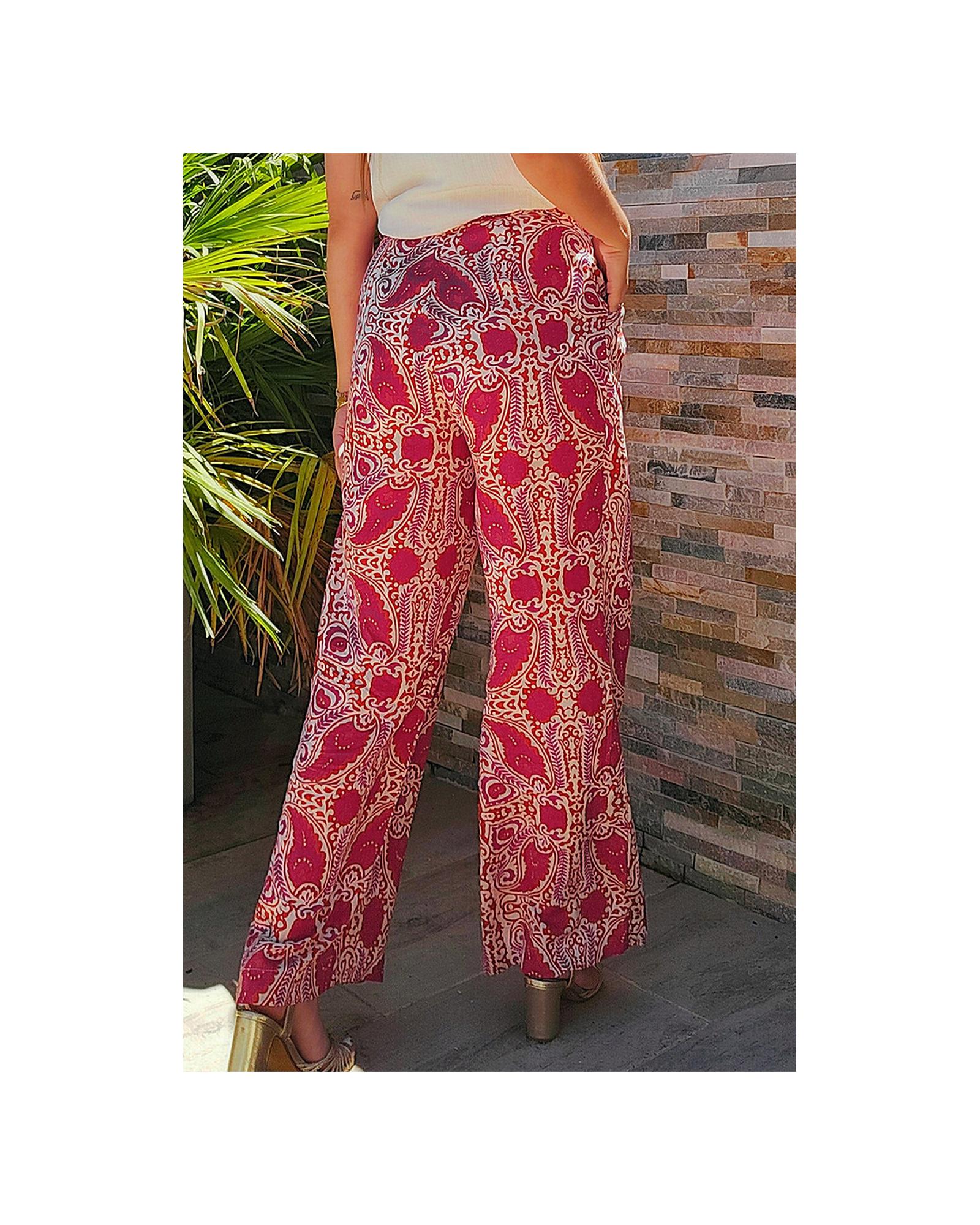 Red Paisley Printed Buttoned High Waist Straight Leg Pants – M