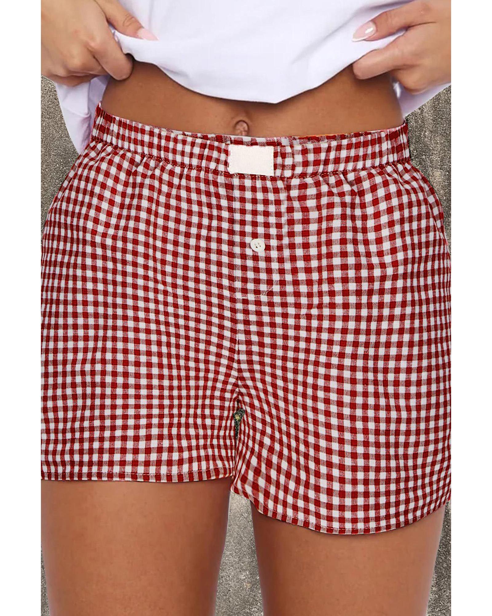 Red Plaid Gingham Printed High Waist Shorts – S