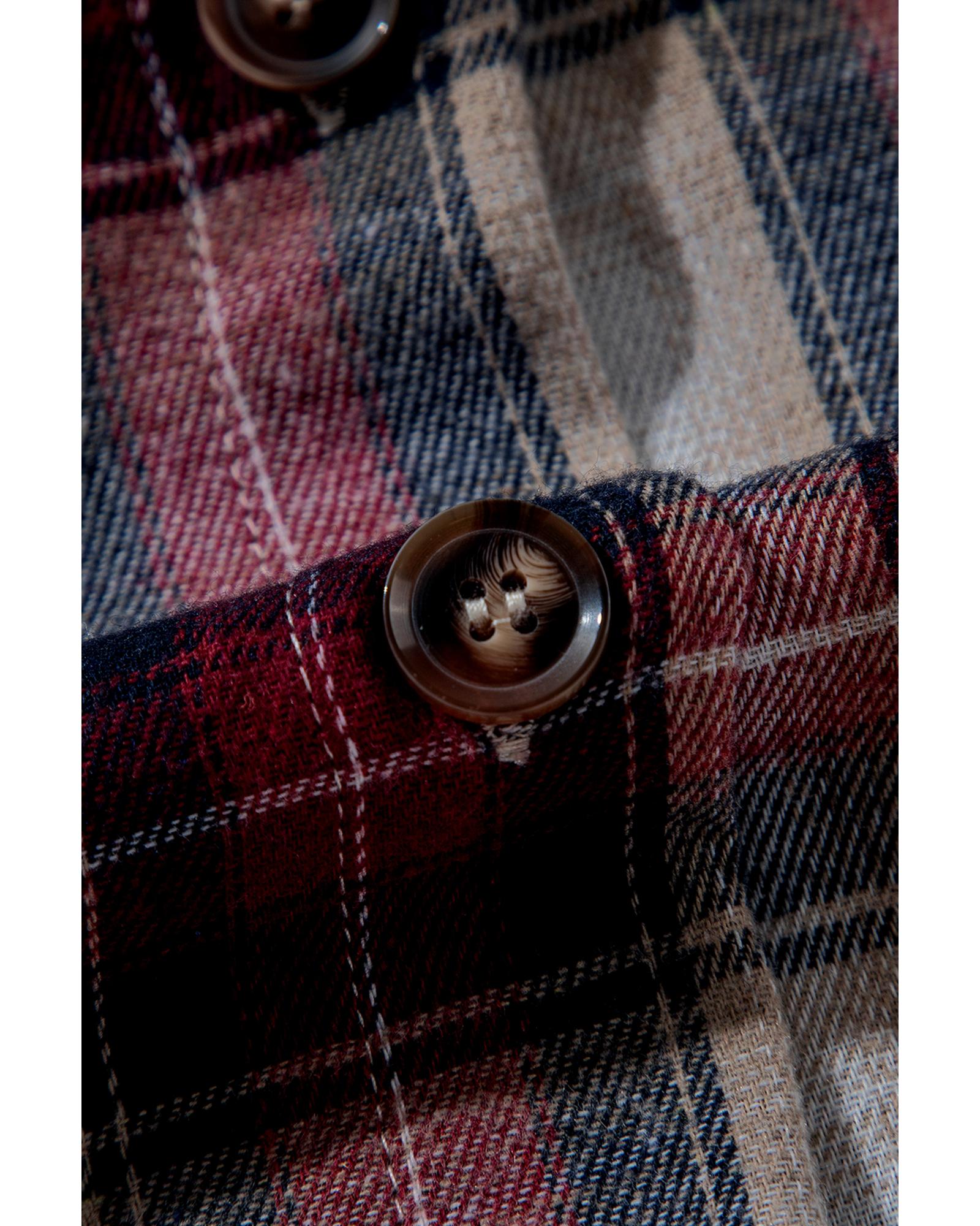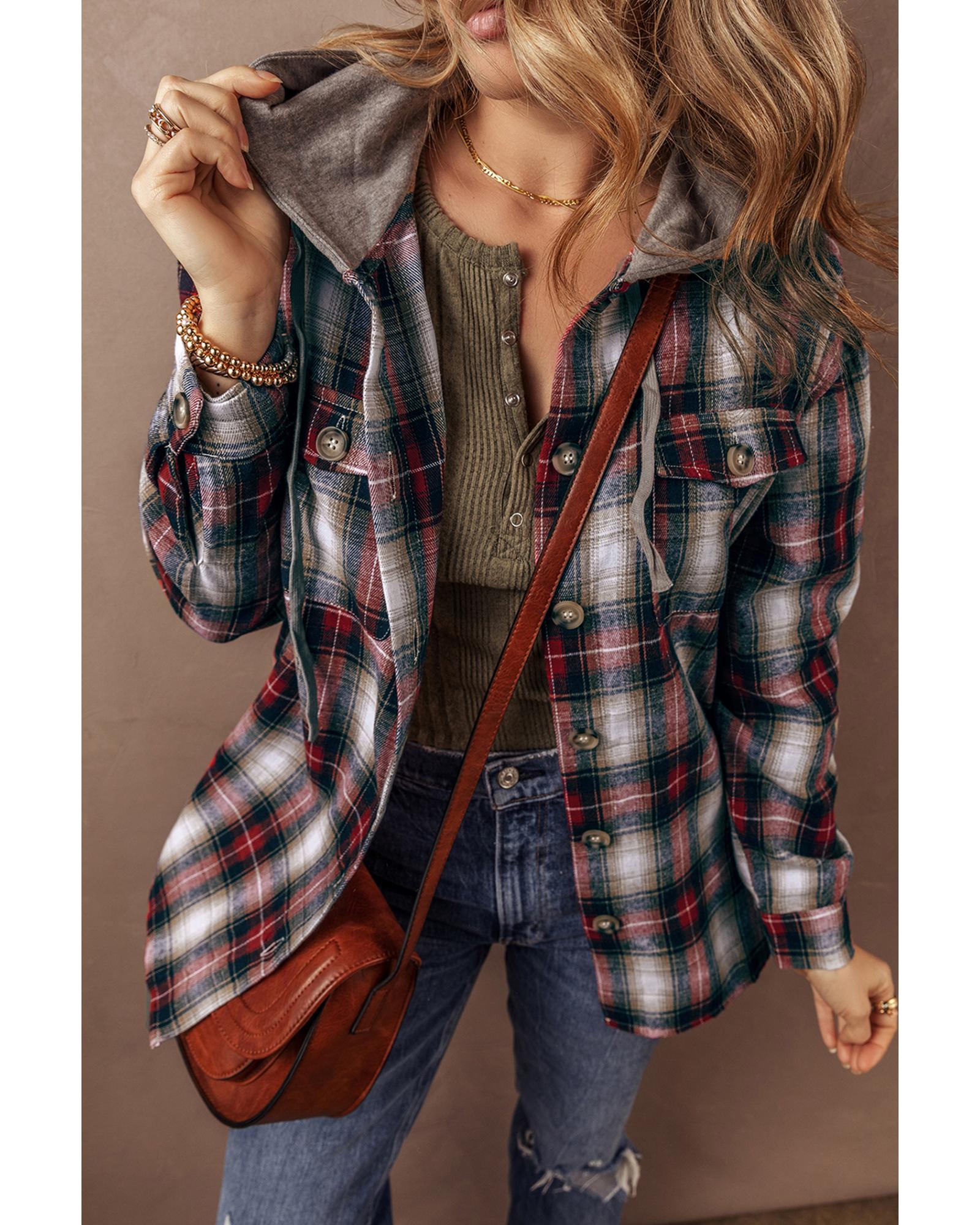Red Plaid Print Chest Pocket Buttoned Hooded Shacket – M