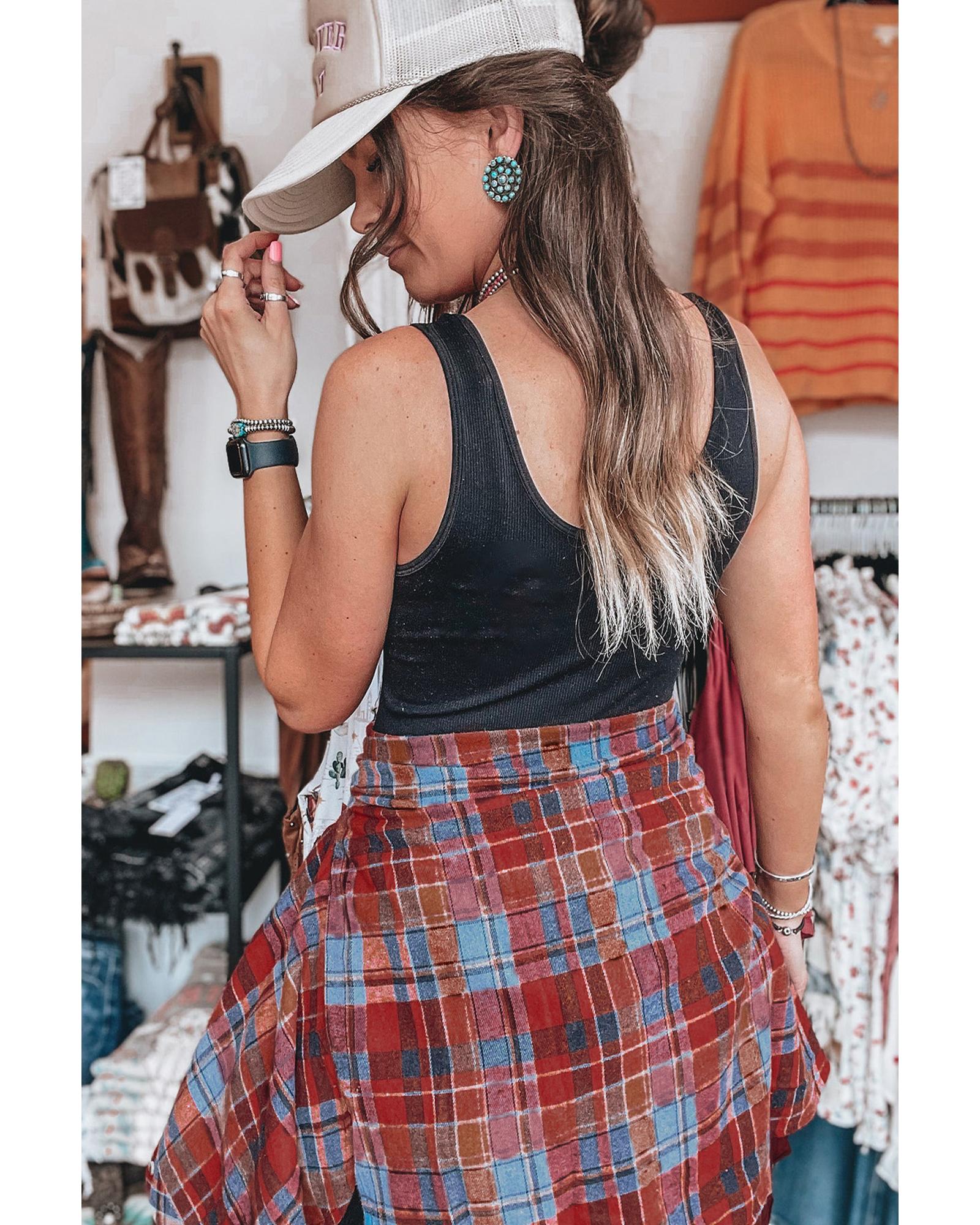 Black Floral Jacquard Square Neck Tank Top - XL Original price was: $51.99.Current price is: $27.99.