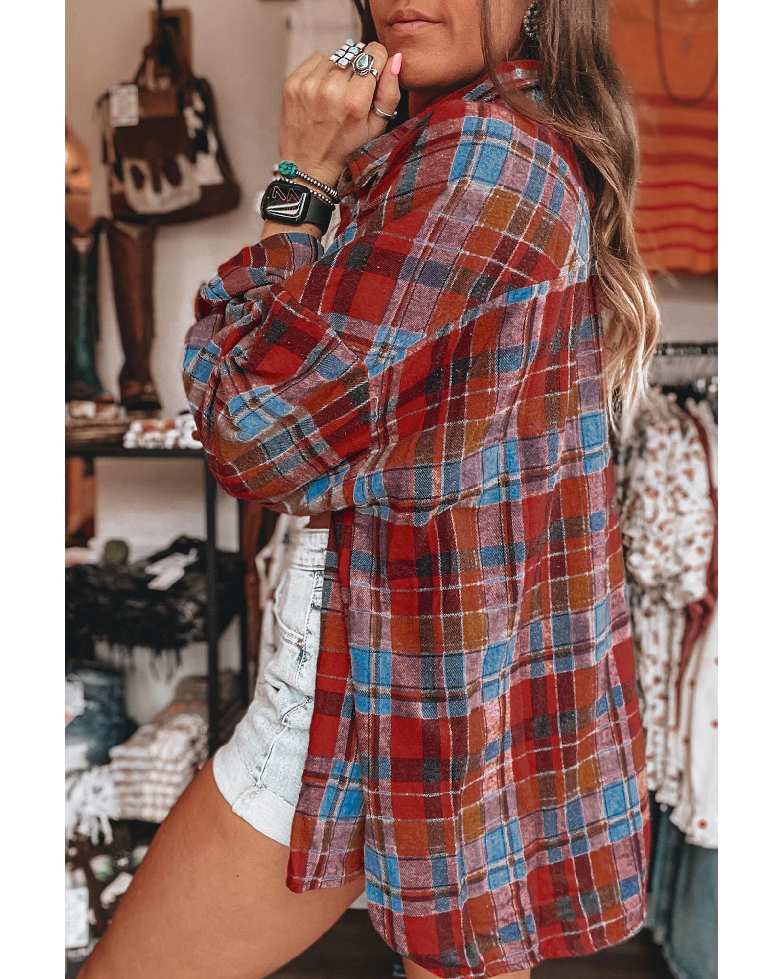 Red Plaid Print Loose Vintage Shirt – XL