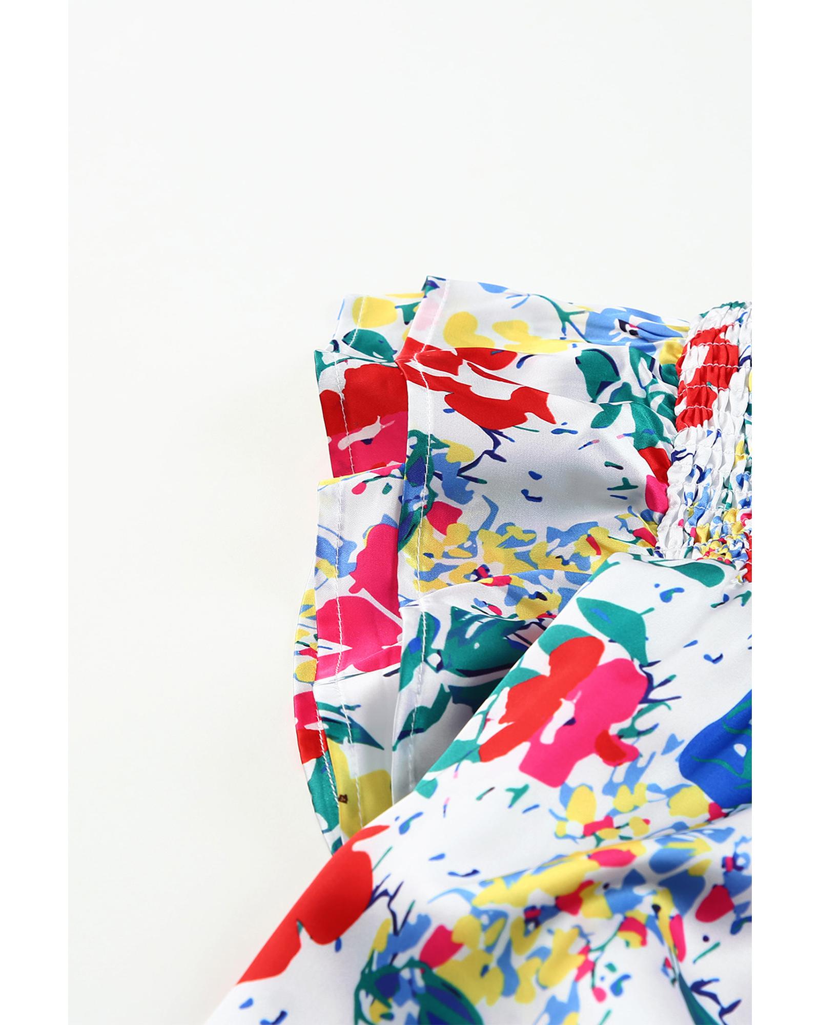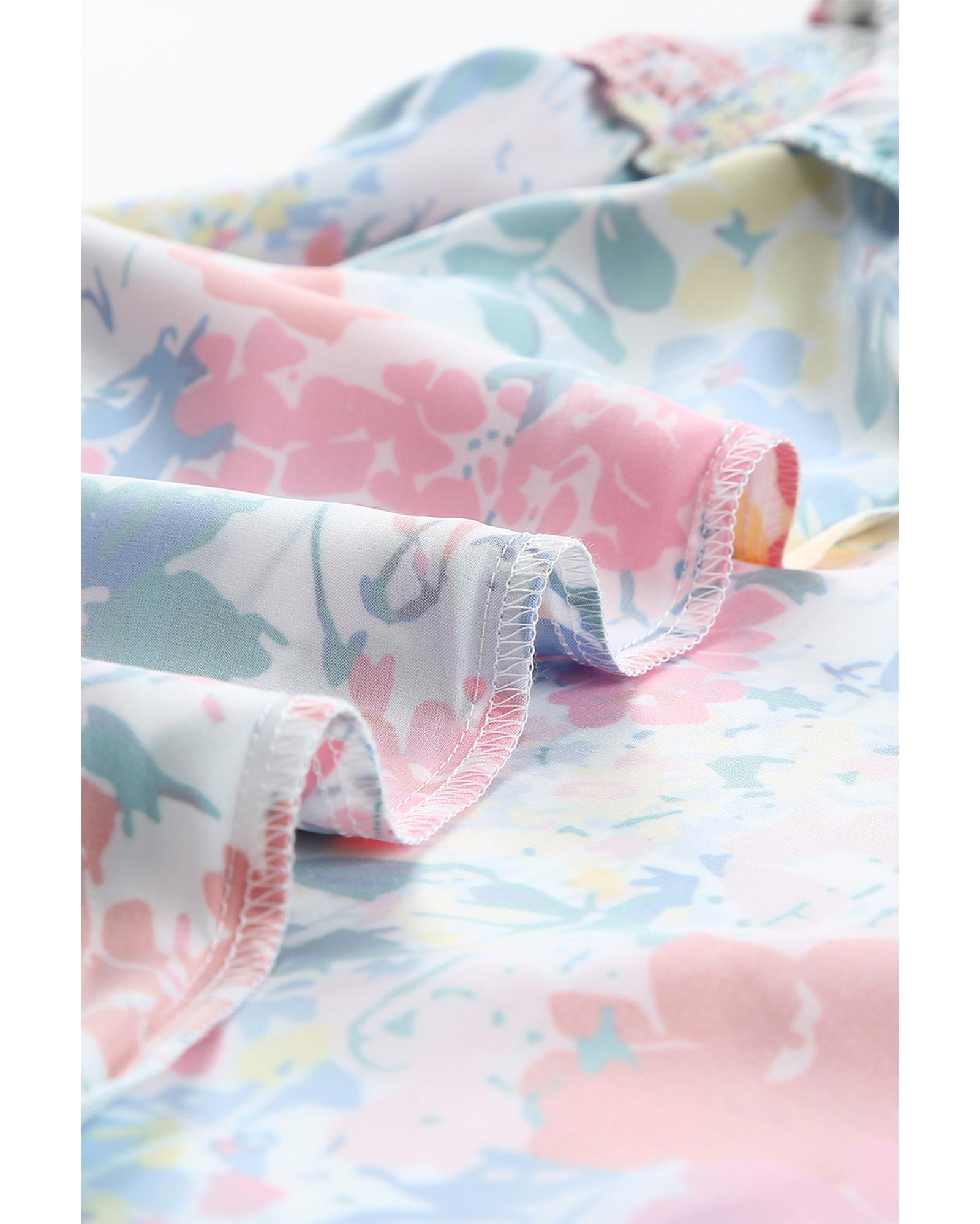 Red Plus Floral Print Ruffle Cap Sleeve V Neck Blouse – 1X