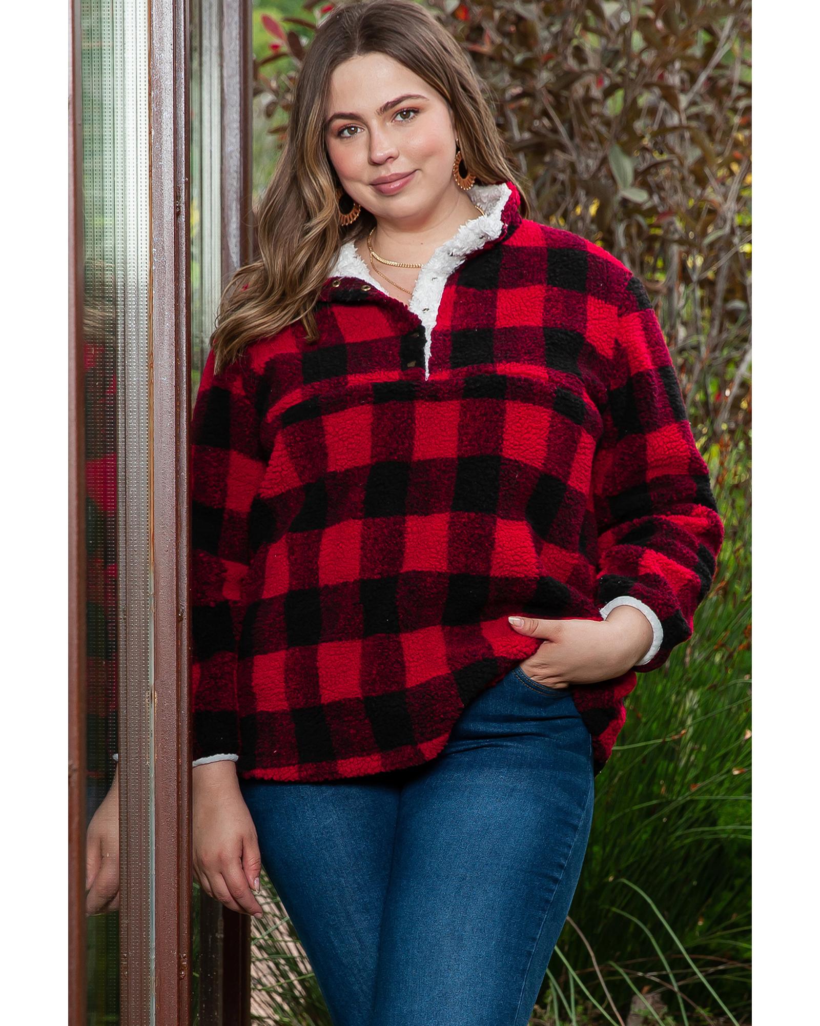 Red Plus Size Buffalo Plaid Sherpa Henley Sweatshirt – 2X
