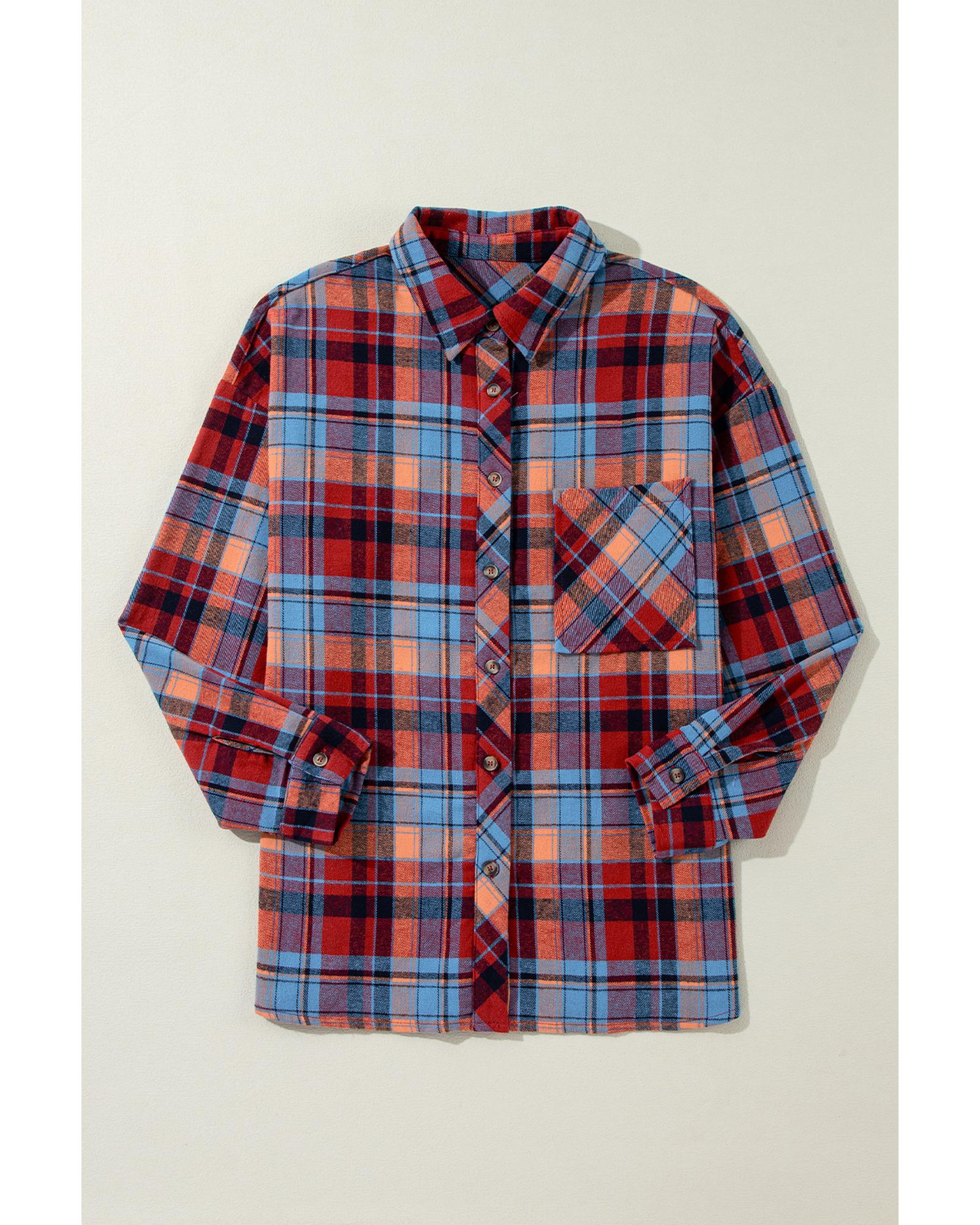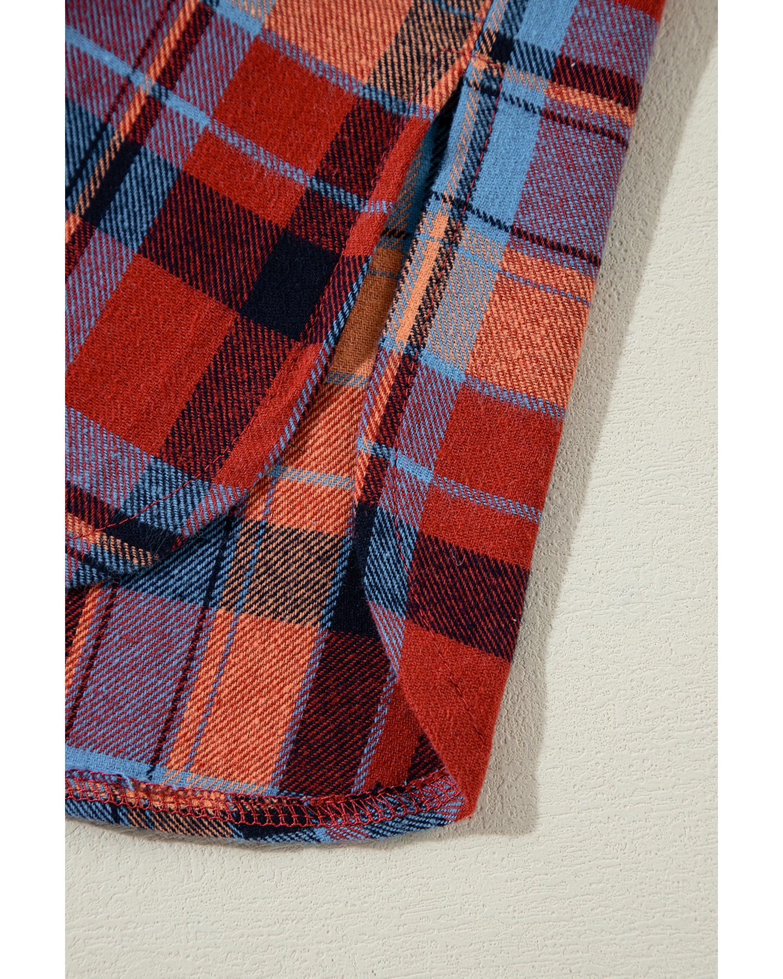 Red Plus Size Plaid Print Buttoned Shirt – 1X