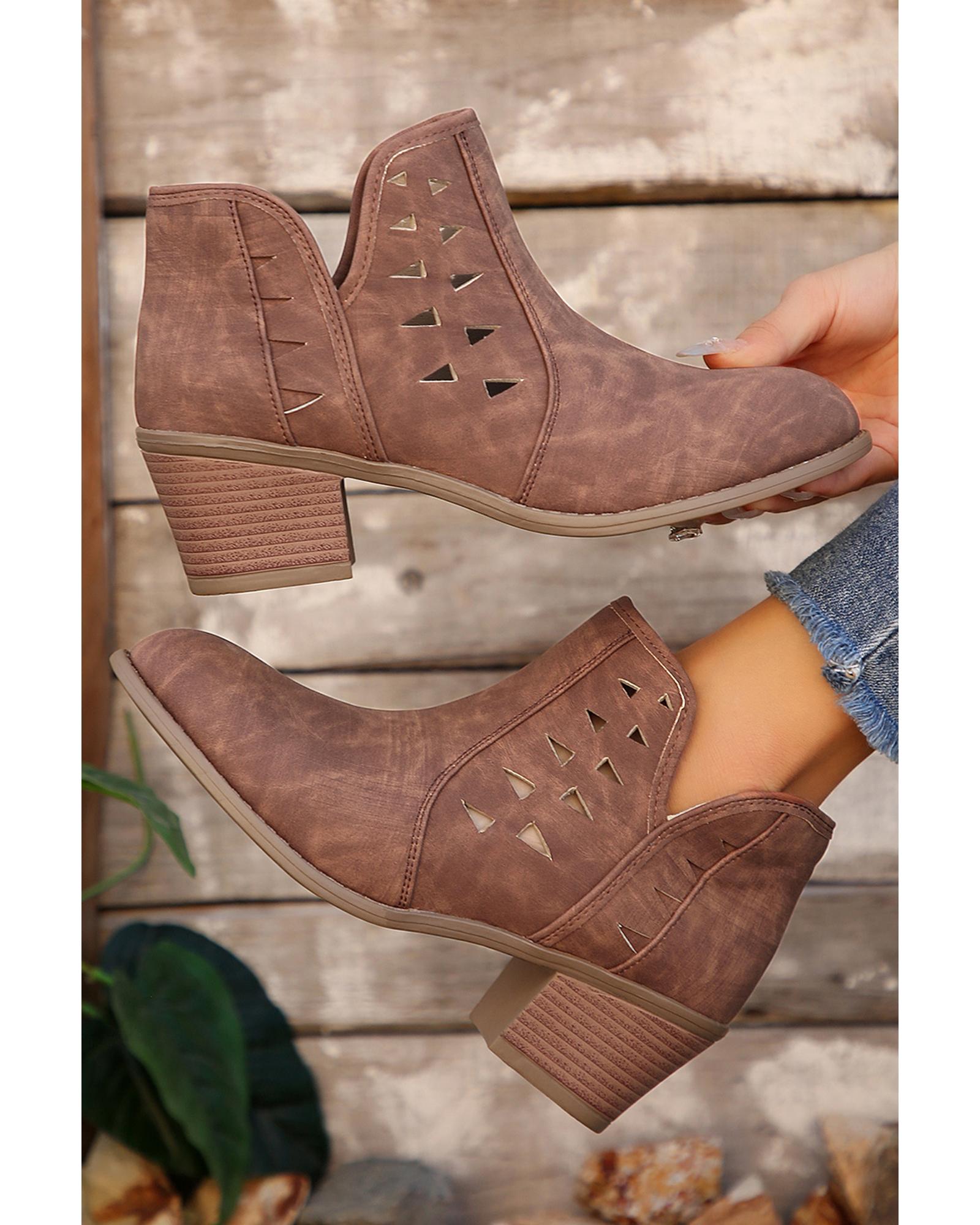 Red Sandalwood Cut Out Suede Pointed Toe Heeled Ankle Boots – 38 EU