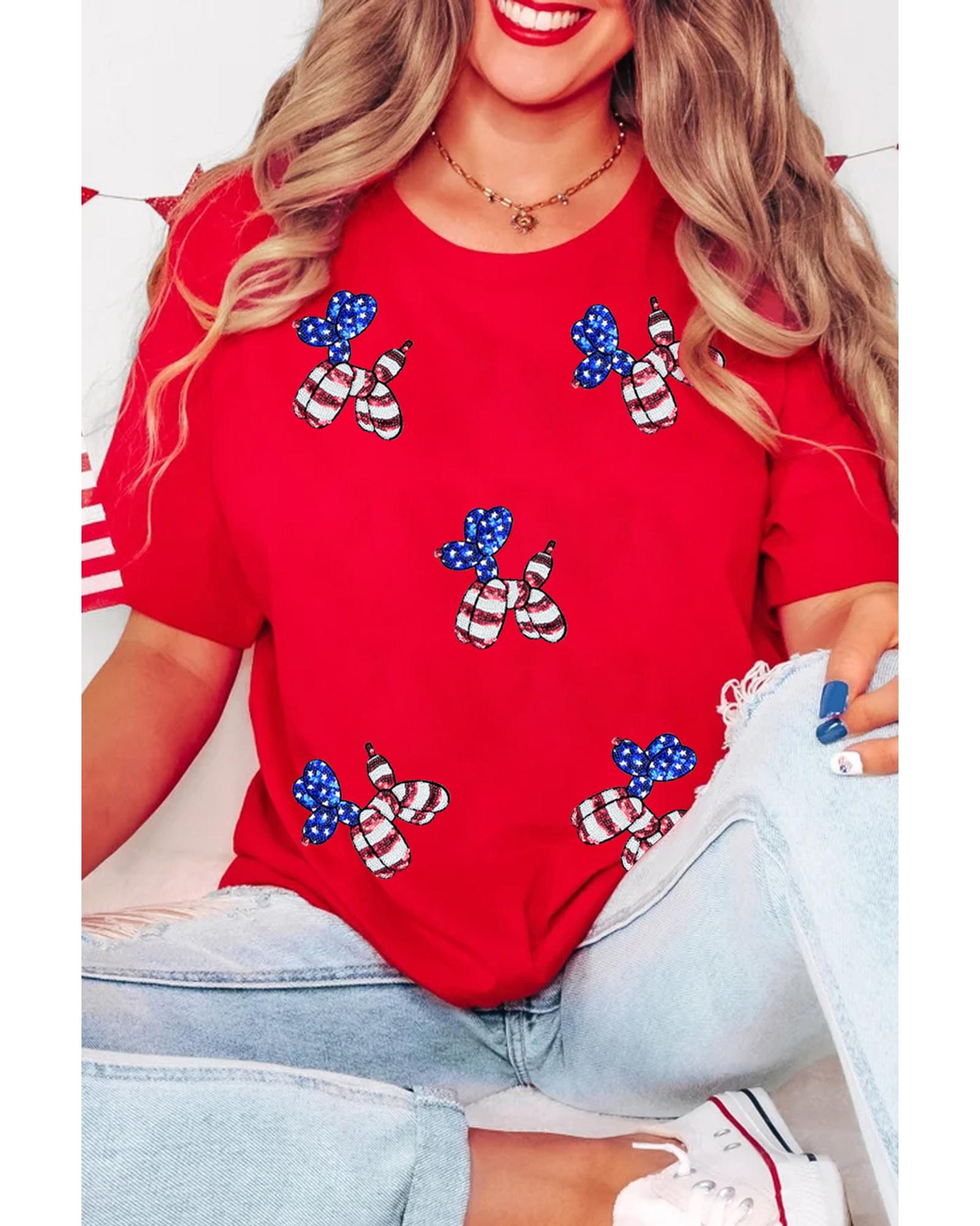 Red Sequin Stars and Stripes Balloon Puppy Graphic Crewneck Tee – 2XL