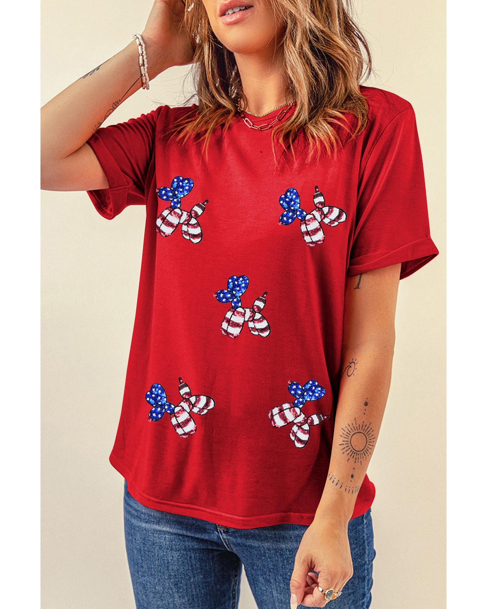Red Sequin Stars and Stripes Balloon Puppy Graphic Crewneck Tee – XL