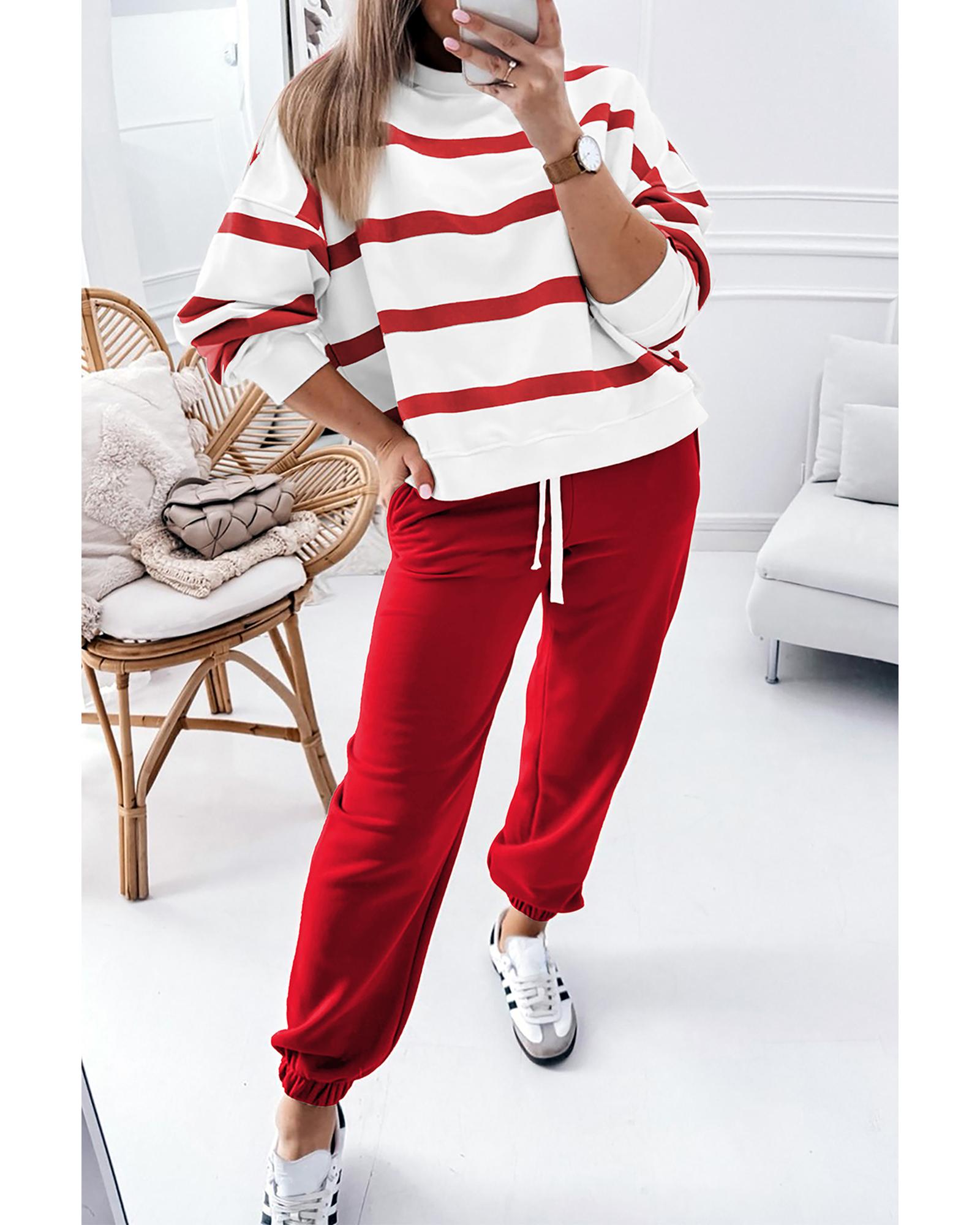 Red Stripe Drop Shoulder Pullover and Jogger Pants Set – XL