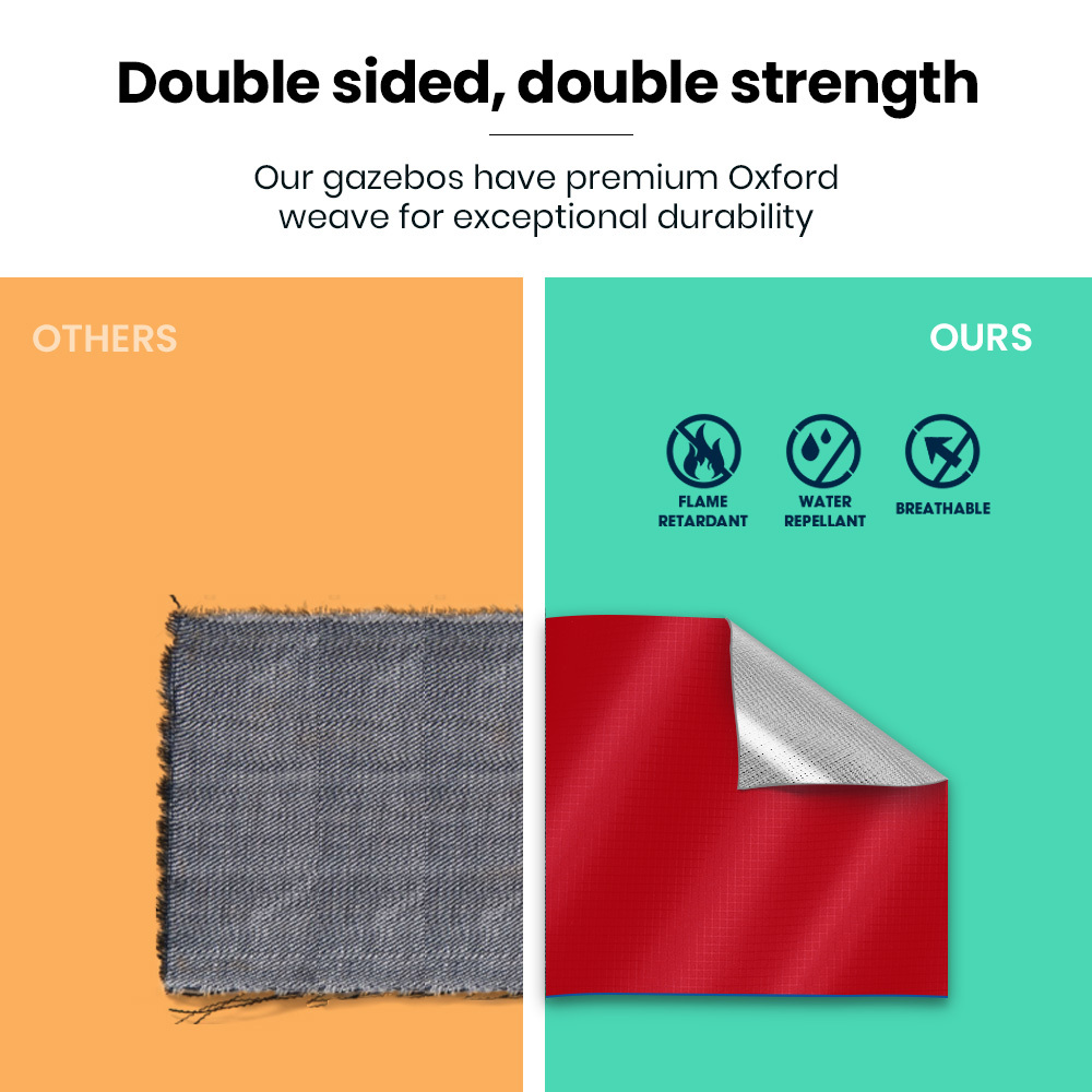The Red Track 3x3m Gazebo (with 3 walls included) stands out with the smallest folded size on the market—just 93cm long! This ultra-compact 13kg design makes it incredibly easy for one person to carry, transport, and store, offering unmatched convenience compared to bulkier alternatives. Whether you’re short on space or always on the move, this gazebo’s design ensures portability without compromise.