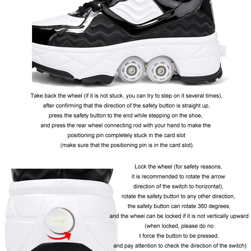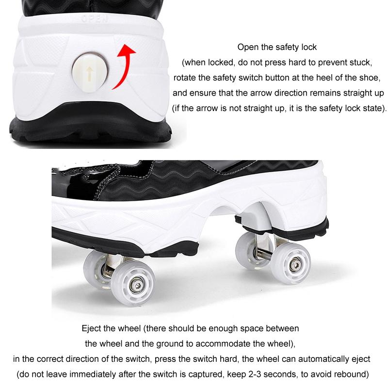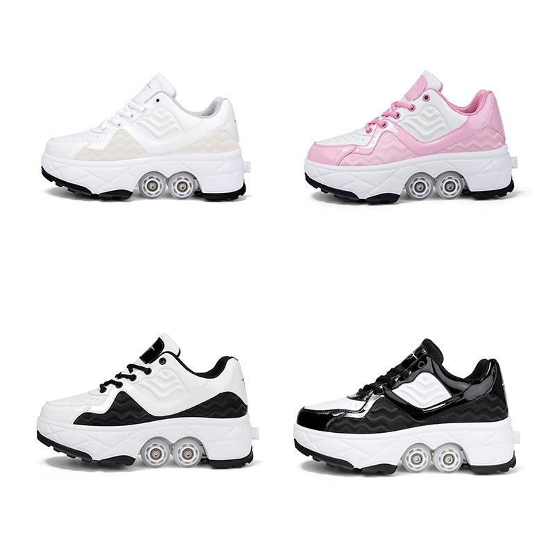 Retractable Dual-purpose Roller Skates – Size 33 Deformable Four-wheel – Df09 Black – 38