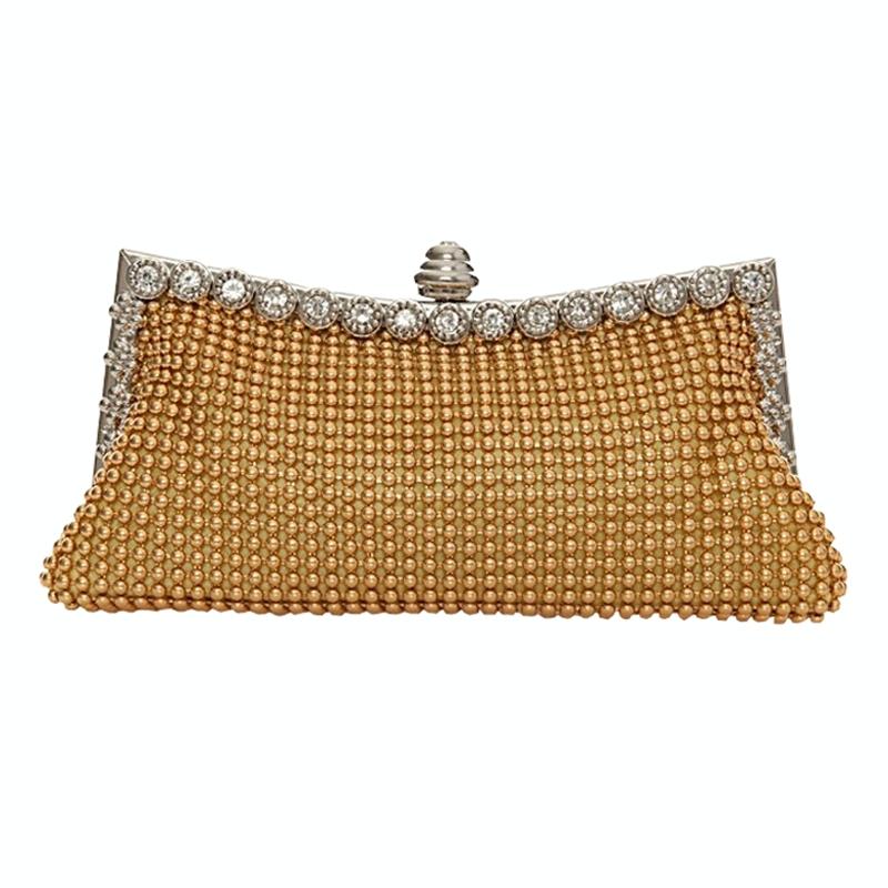 Rhinestone Evening Clutch for Ladies – Beaded Banquet Bag – Gold