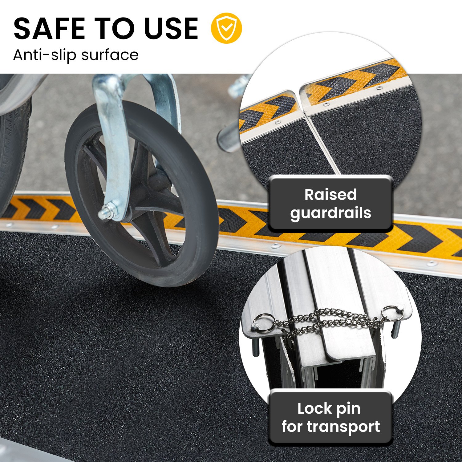 The ramp is covered with a black high-grip surface for safe use at all times. It has a maximum loading capacity of 272kg (600lbs) and is made with high-strength aluminium for added durability. It also has a carry handle and locking pin for the ultimate convenience.