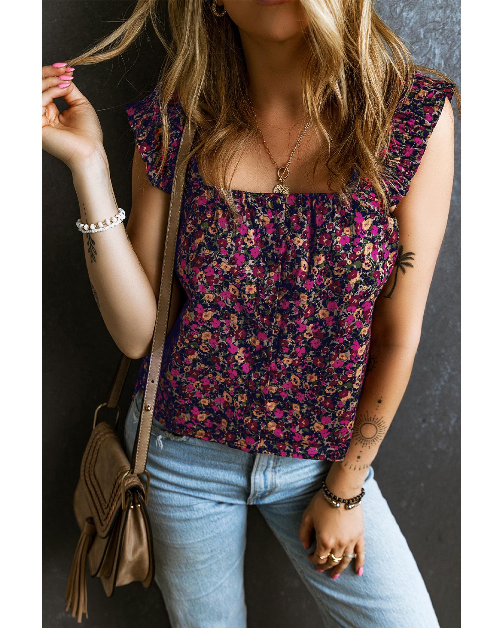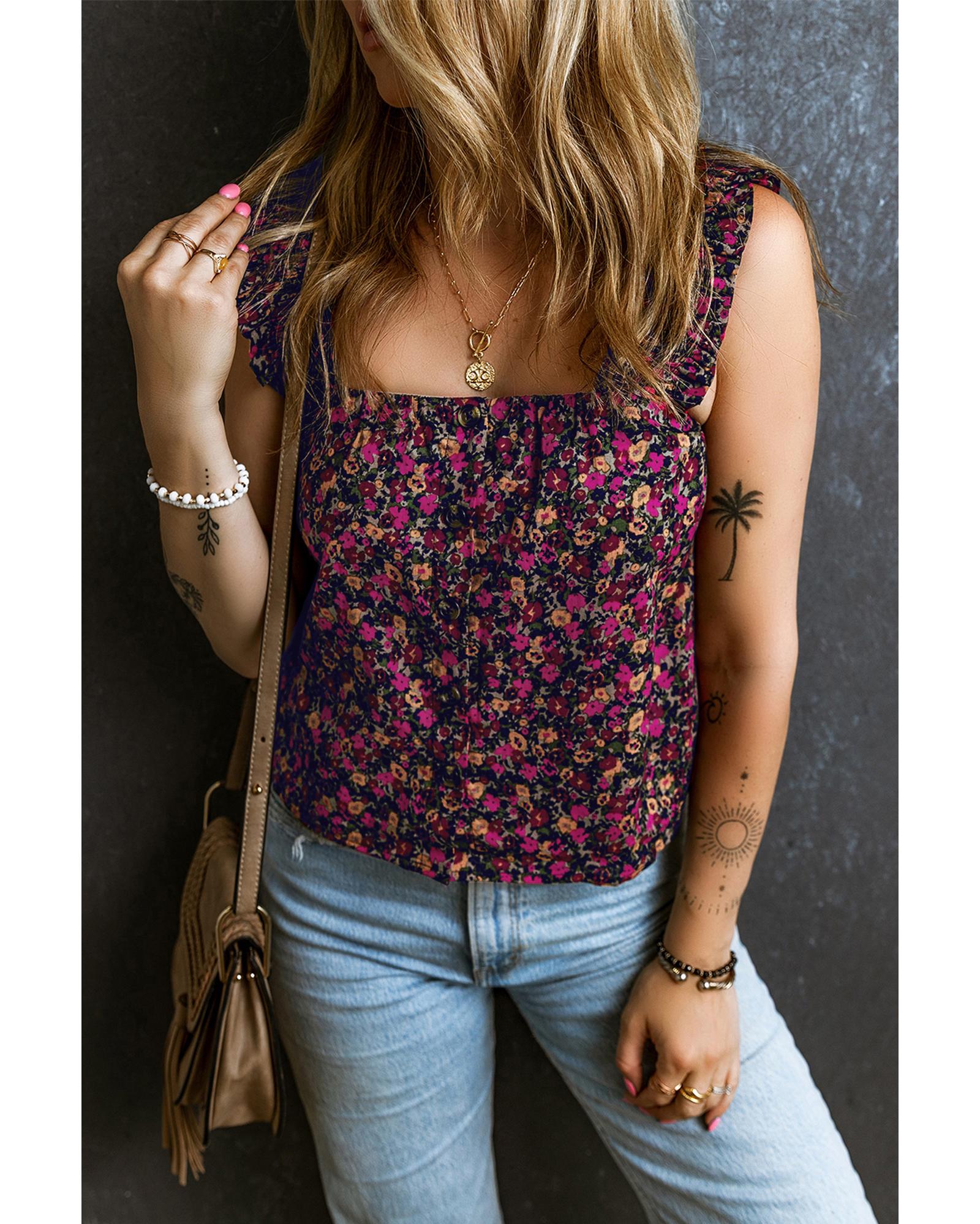 Rose Boho Frilled Straps Floral Tank Top – XL