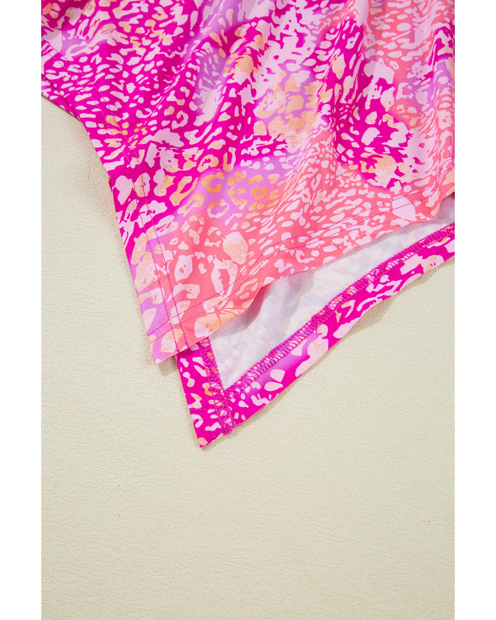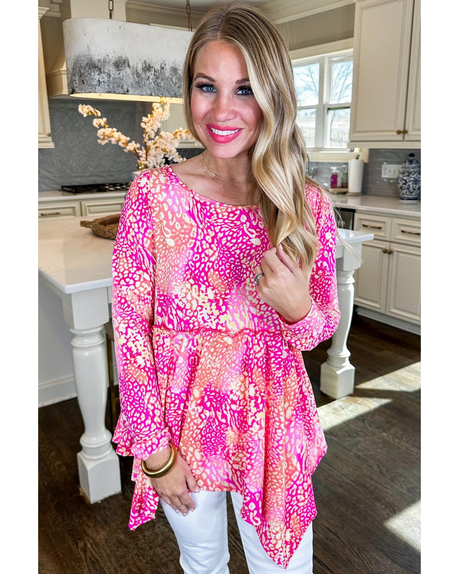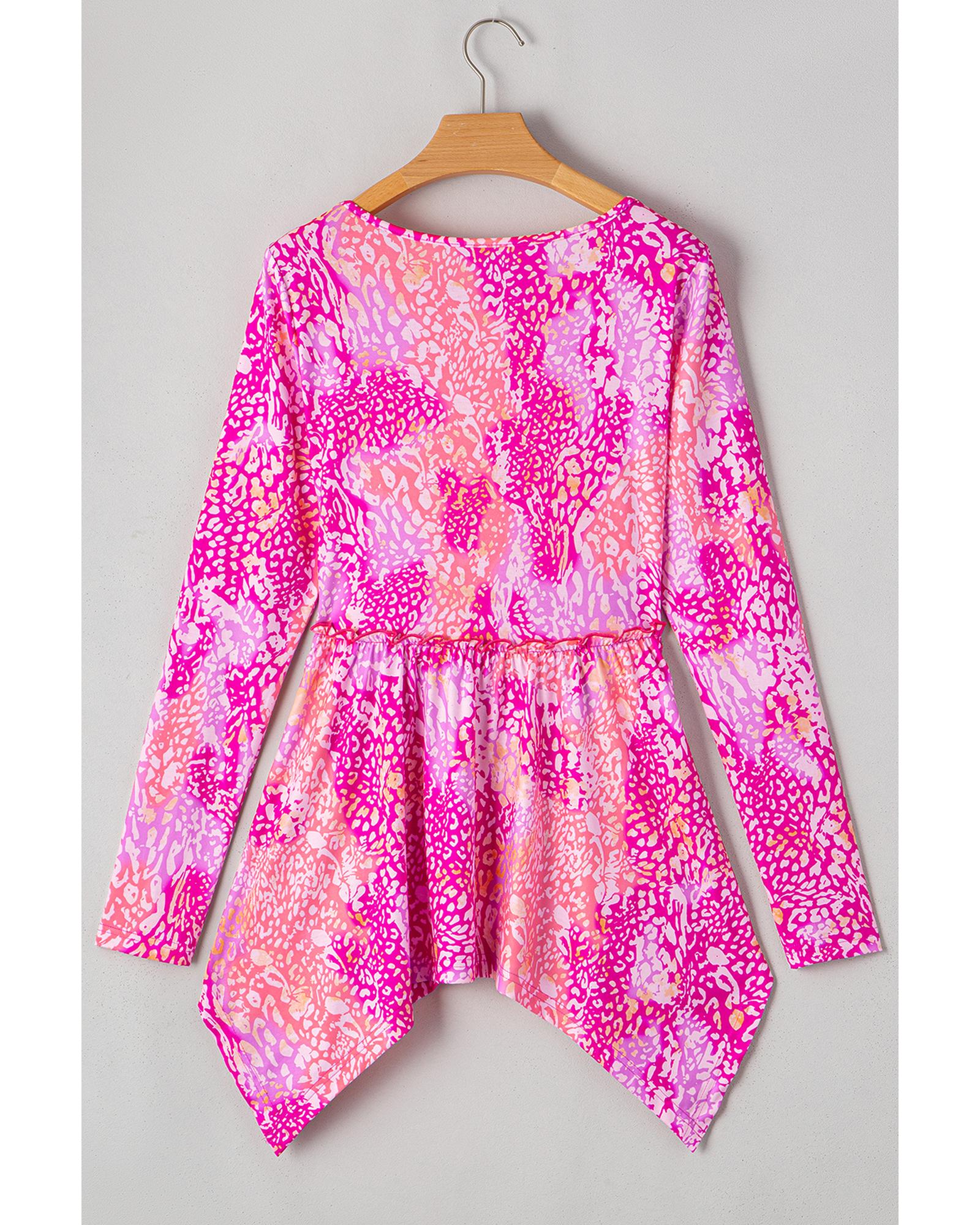 Rose Classic Leopard Print Handkerchief Hem Tunic Top – L