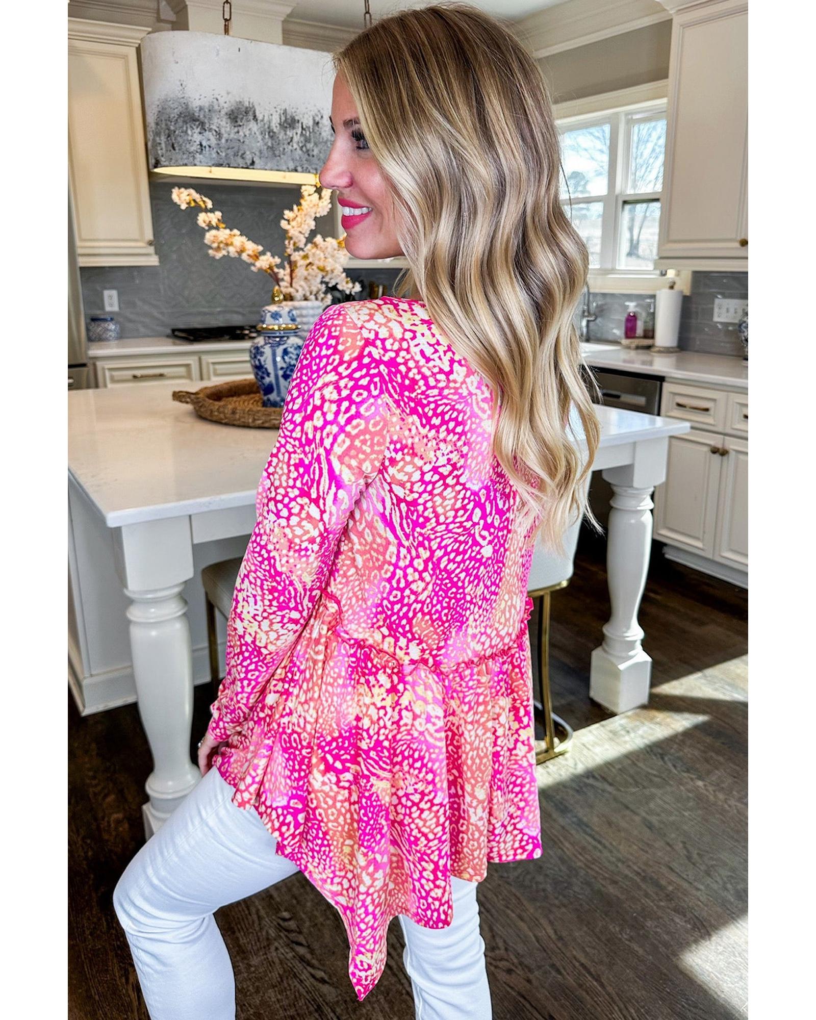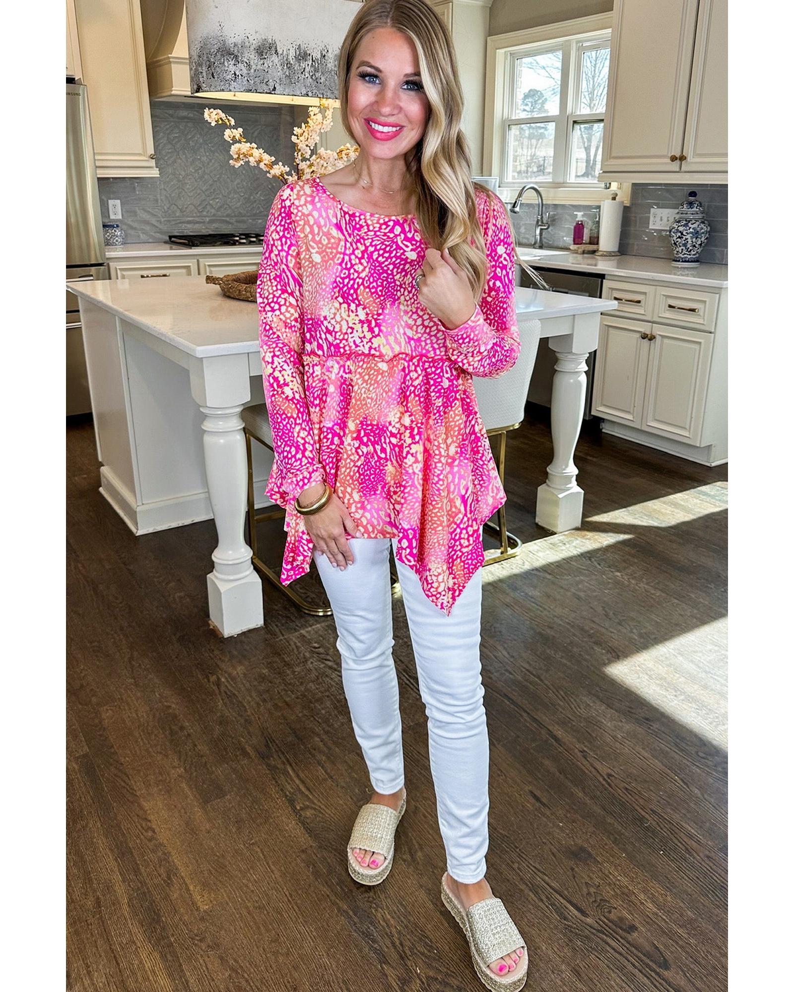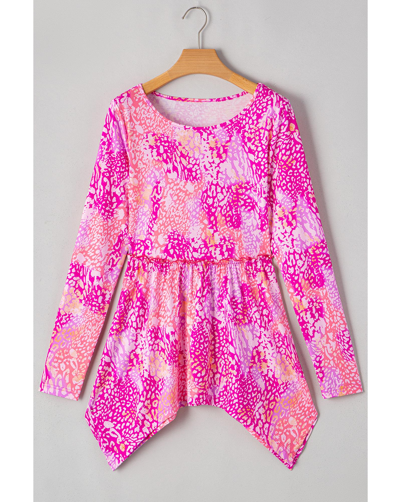 Rose Classic Leopard Print Handkerchief Hem Tunic Top – M