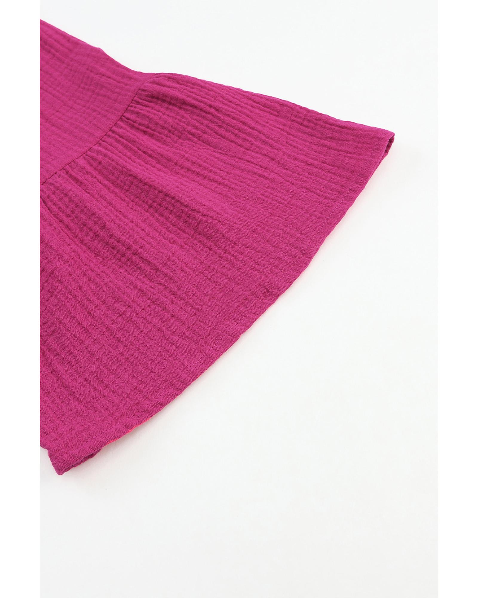 - Rose Crinkled Tiered Split Neck Shirt Dress