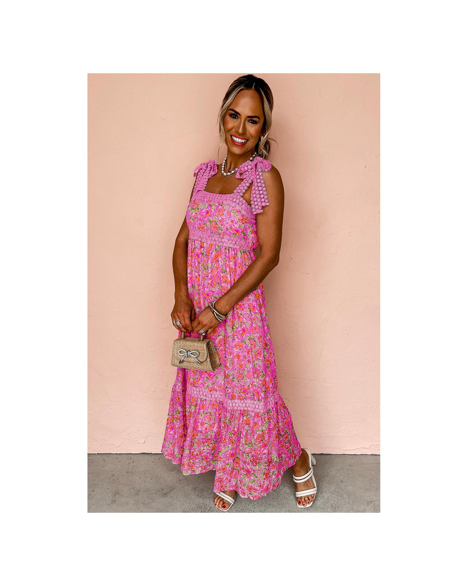 Rose Floral Lace Tied Strap Empire Waist Maxi Dress – M