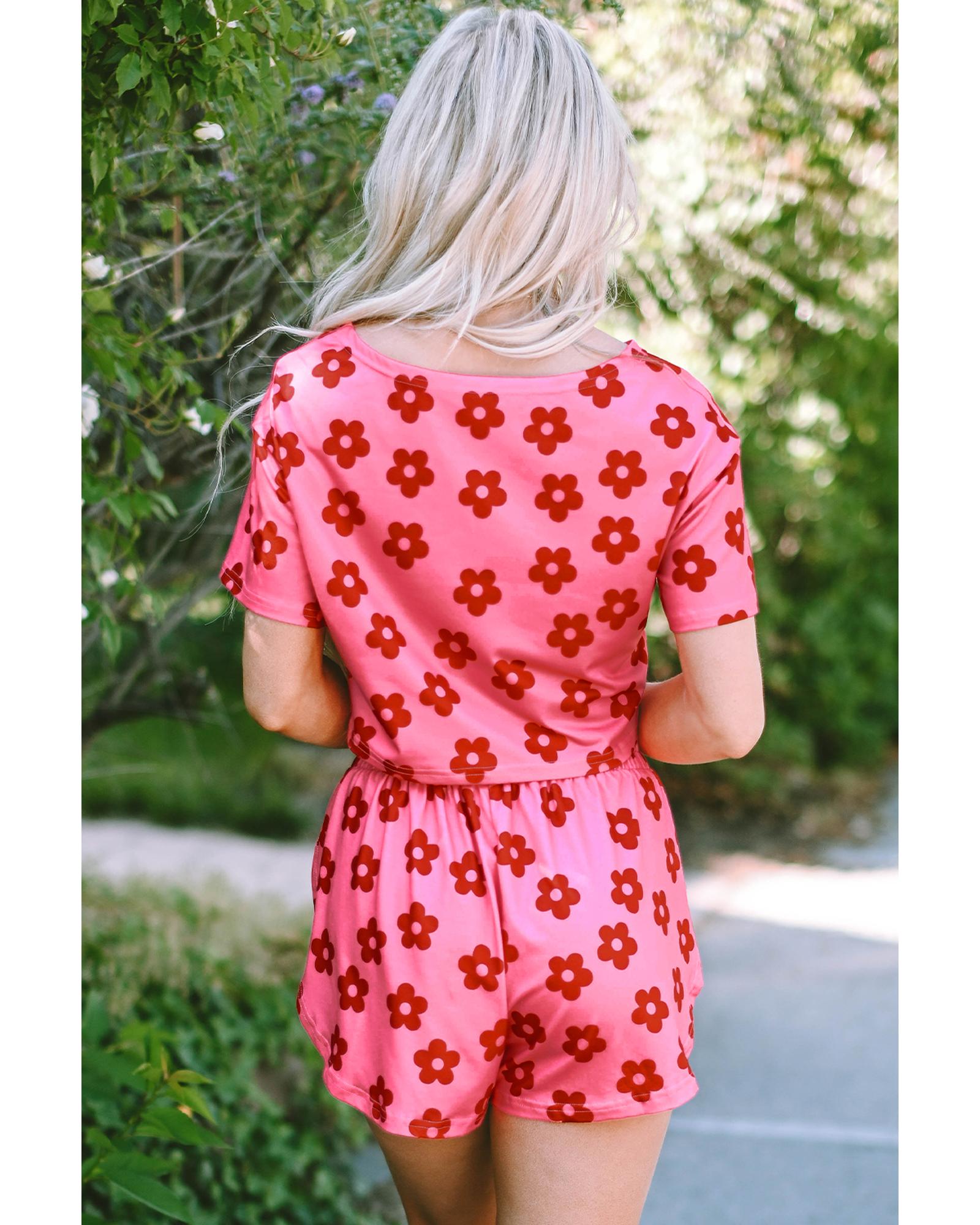 Rose Floral Print Crop Tee and Shorts Lounge Set – L