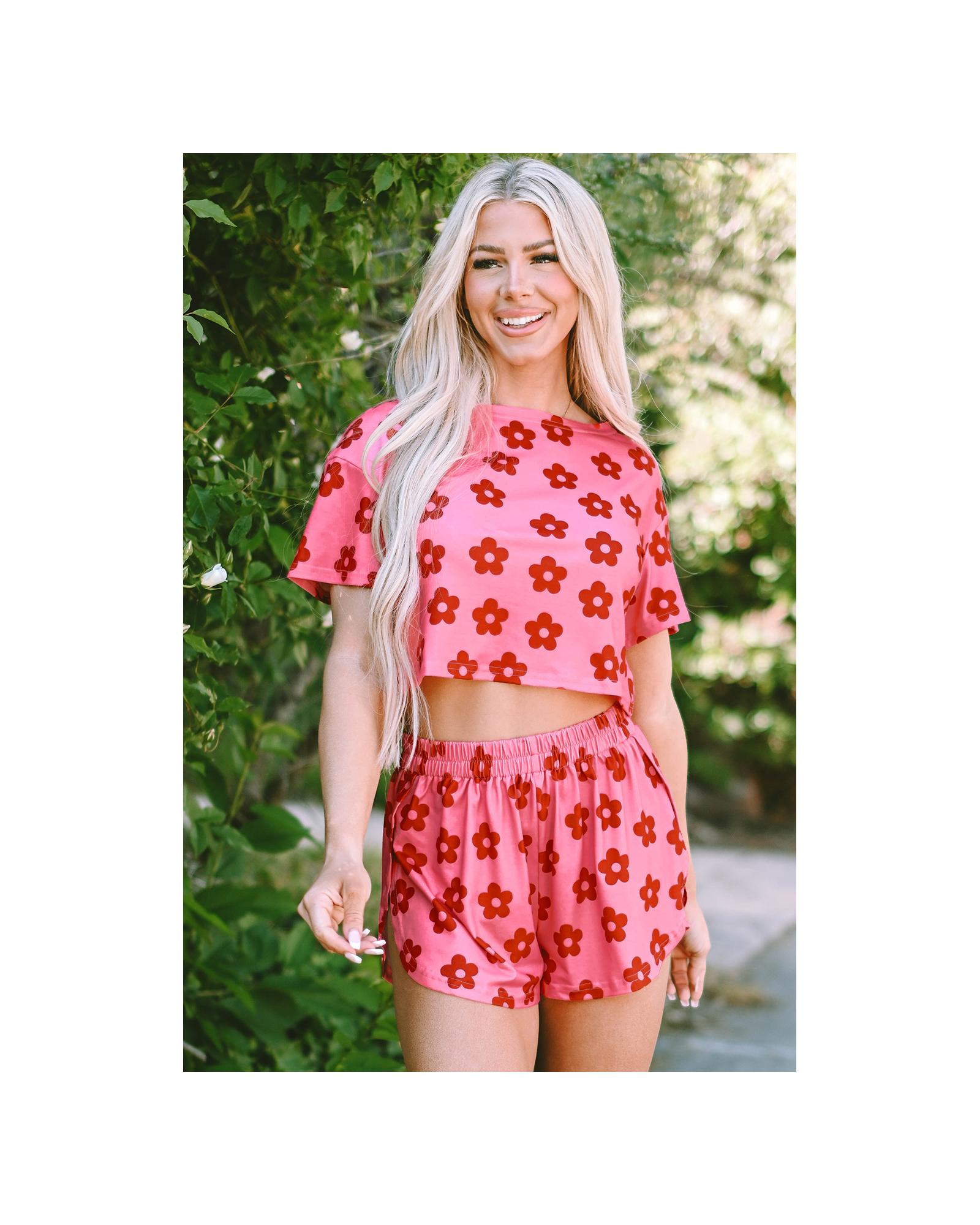 Rose Floral Print Crop Tee and Shorts Lounge Set – M