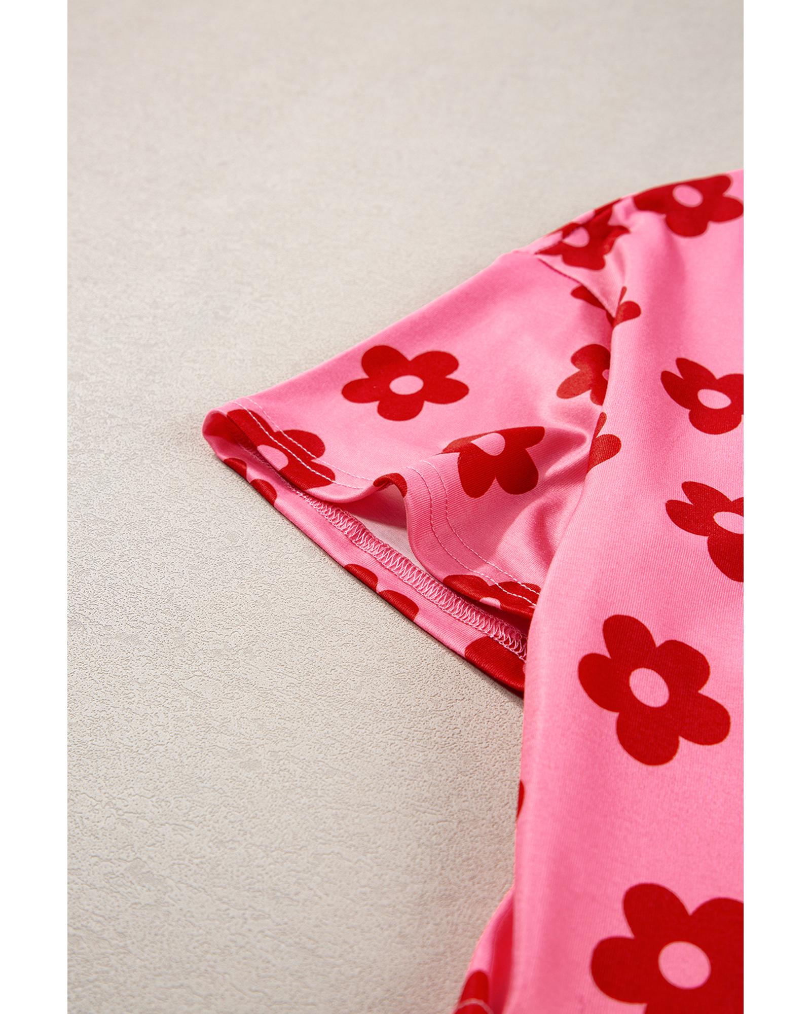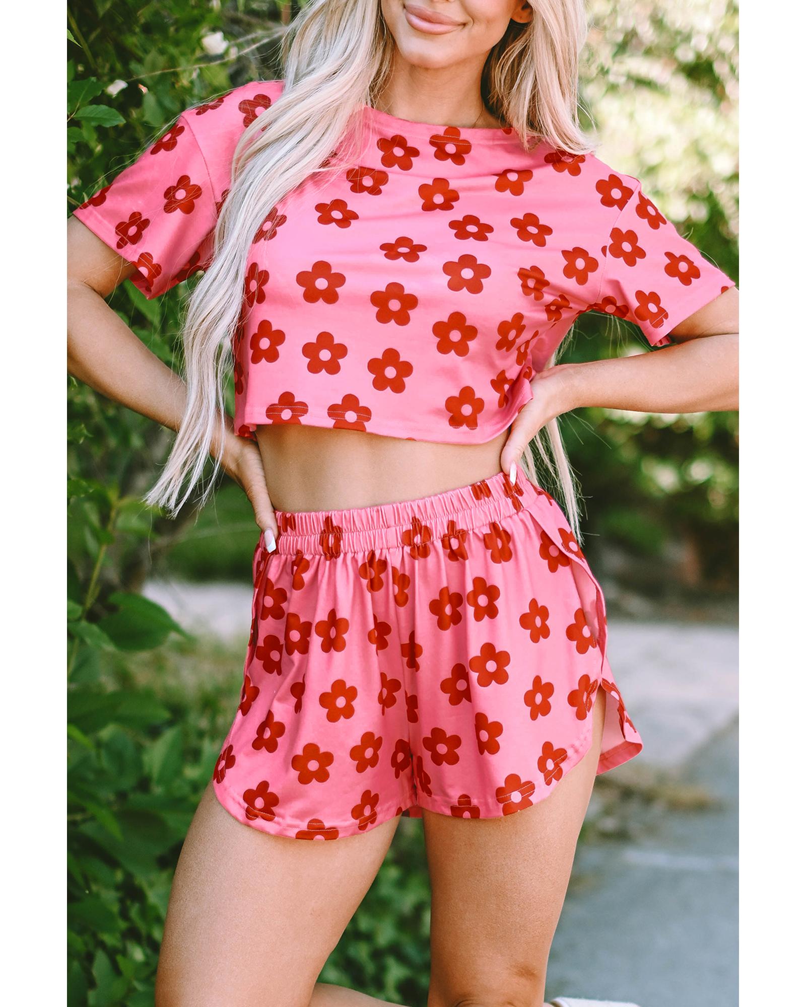 Rose Floral Print Crop Tee and Shorts Lounge Set – XL