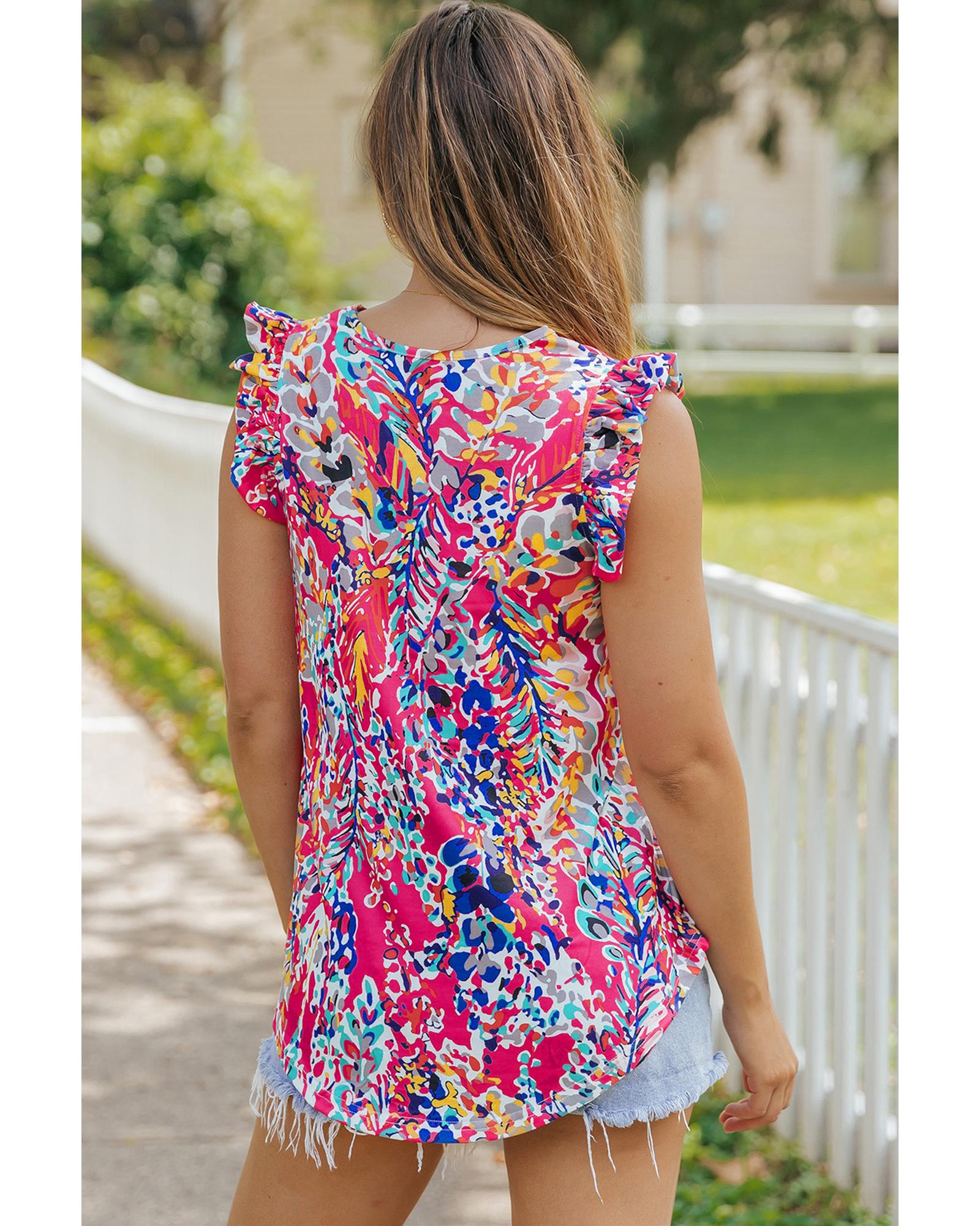 • Gorgeous tank top featuring a blooming floral print and flattering ruffle sleeves