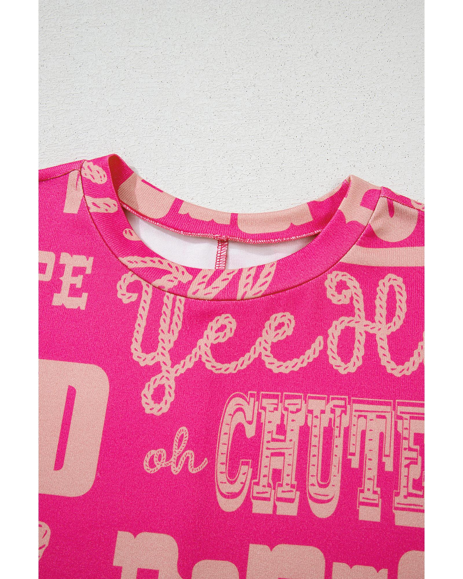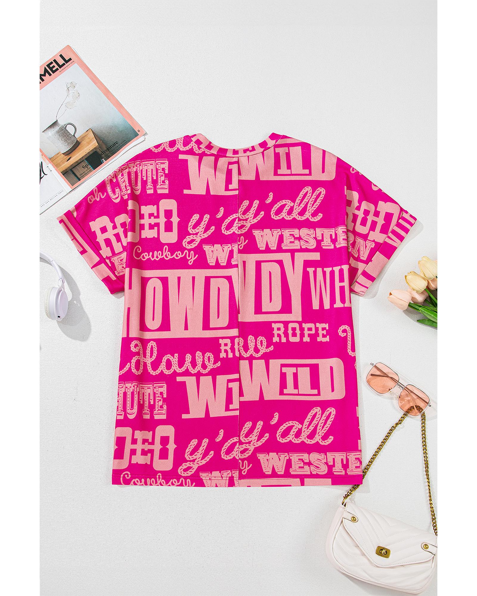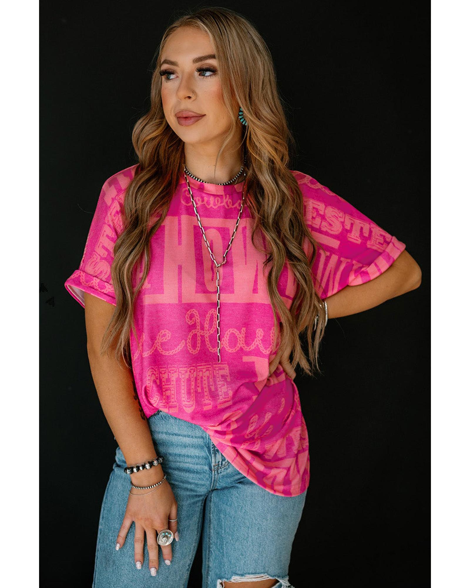 Rose Howdy Cowboy Letter Printed Western Fashion Tee – S