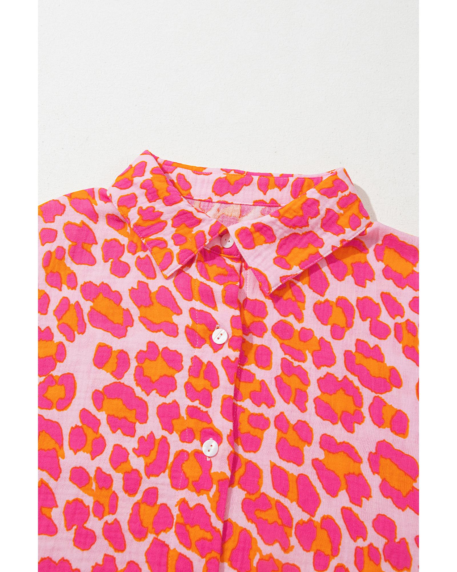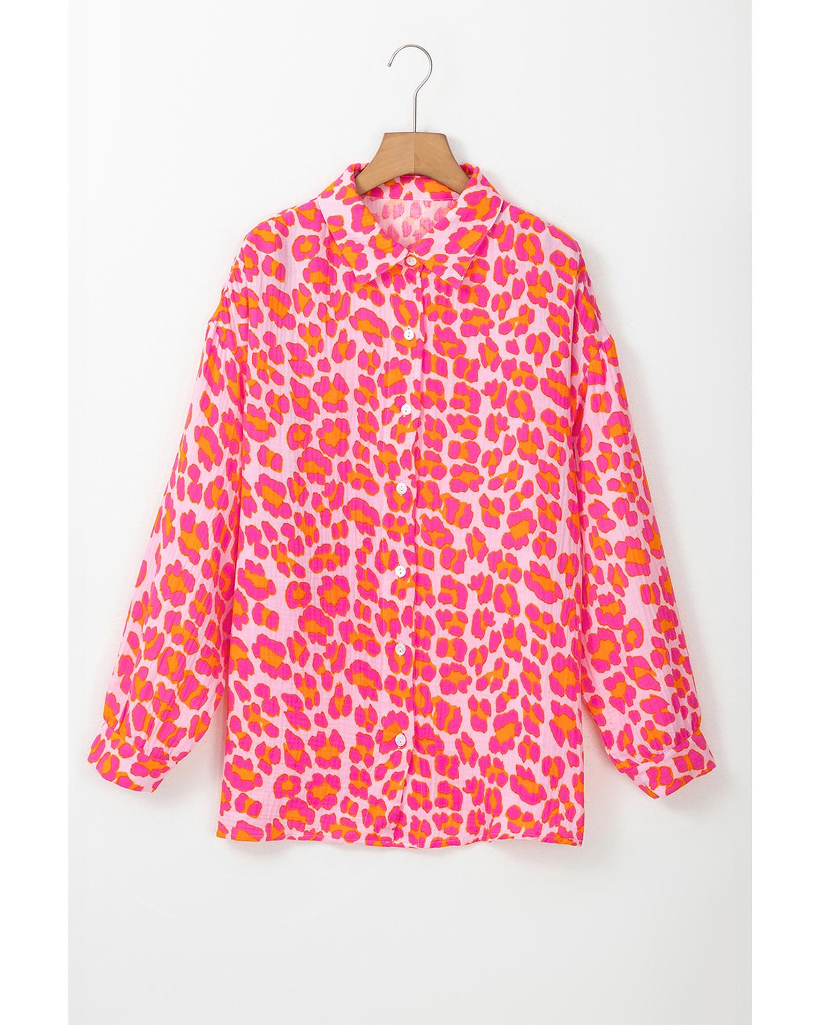 Rose Leopard Printed Button Up Loose Shirt – XL