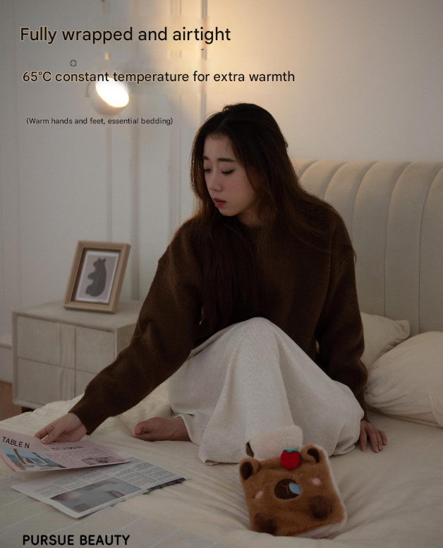 Banish the chill and soothe aches and pains with this incredibly cute and functional hot water bottle. Featuring a high-quality, leak-proof PVC inner bottle and an irresistibly soft capybara plush cover, it’s your perfect companion for cold nights, providing comforting warmth for your hands, feet, and body.