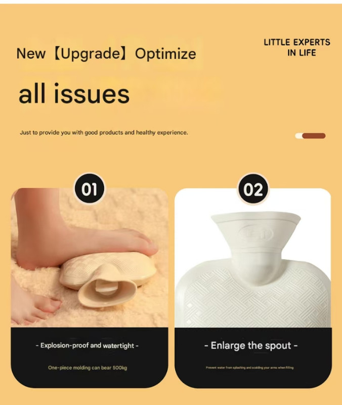 - User-Friendly Design: Features a wide mouth for safe and easy filling, preventing splashes. The bottle’s anti-scald textured surface helps to insulate and distribute heat evenly for long-lasting comfort.