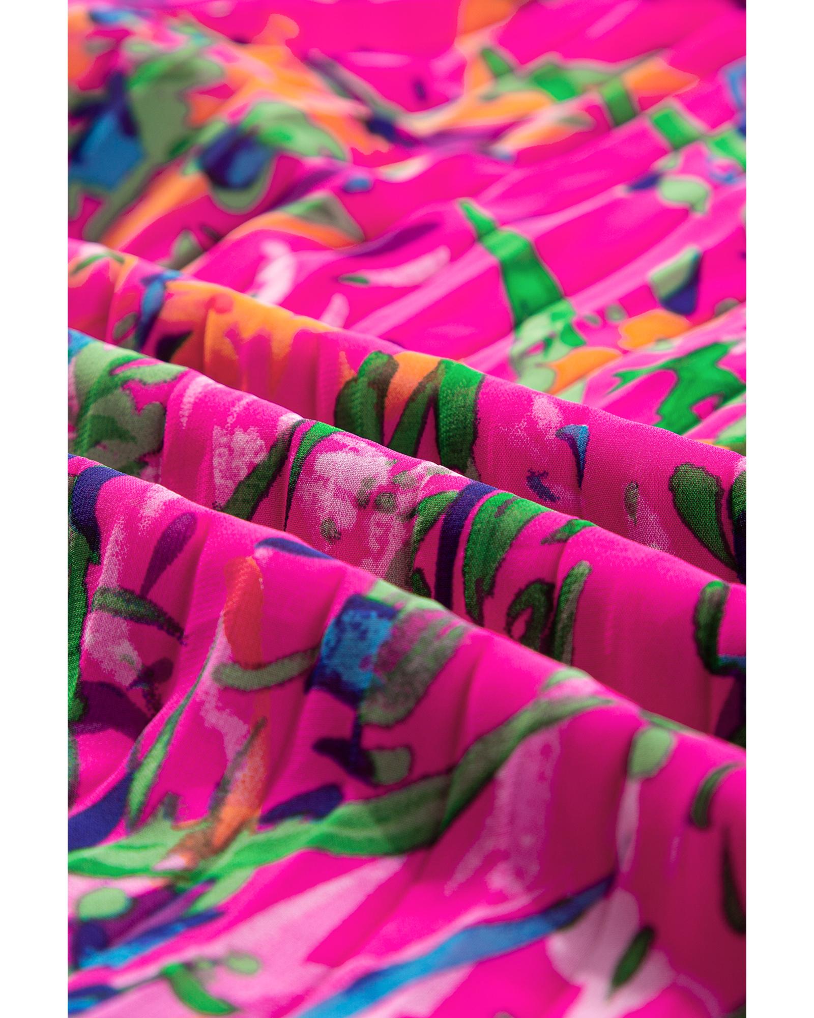 Rose Plus Size Abstract Floral Print Pleated Loose Dress – 2X