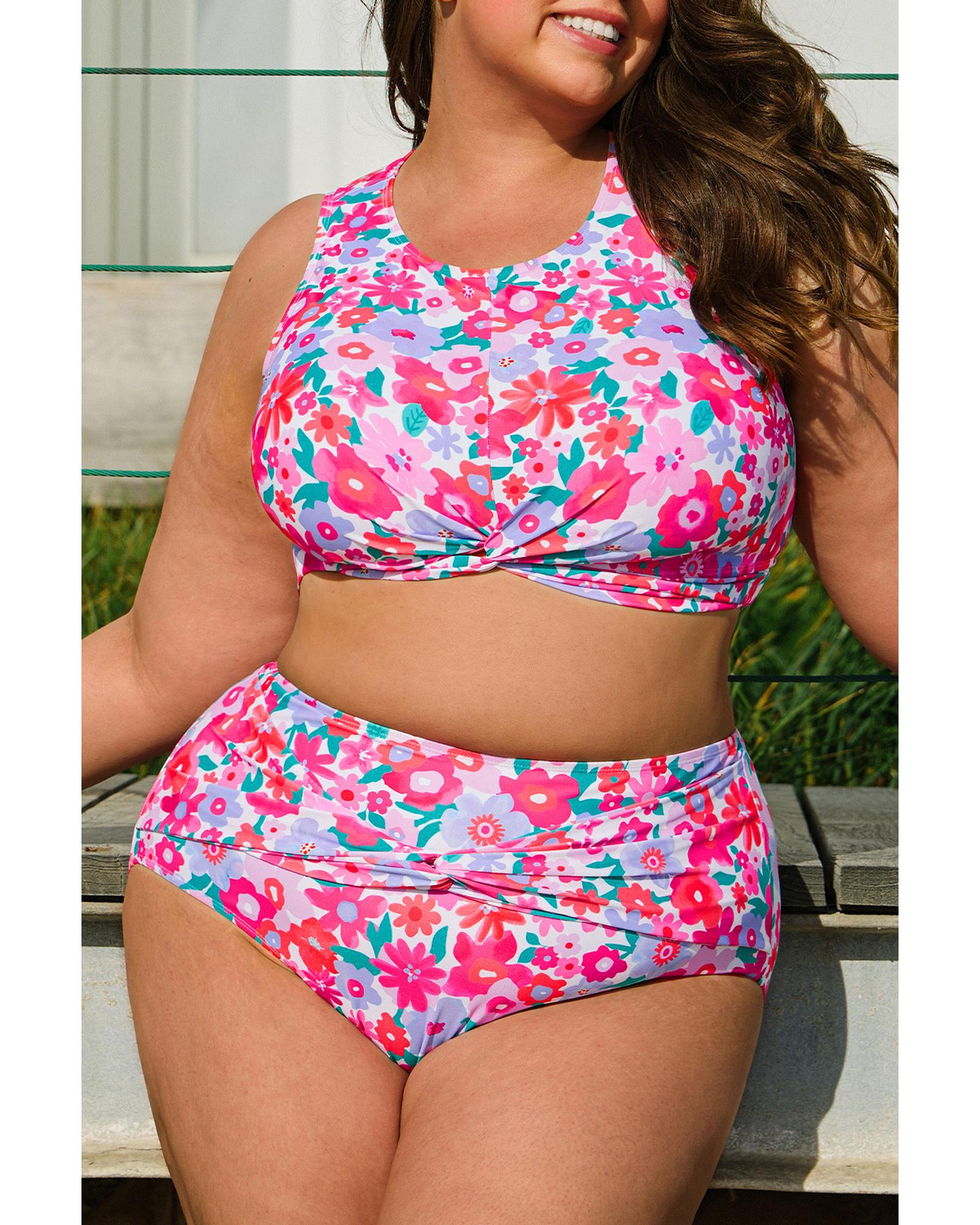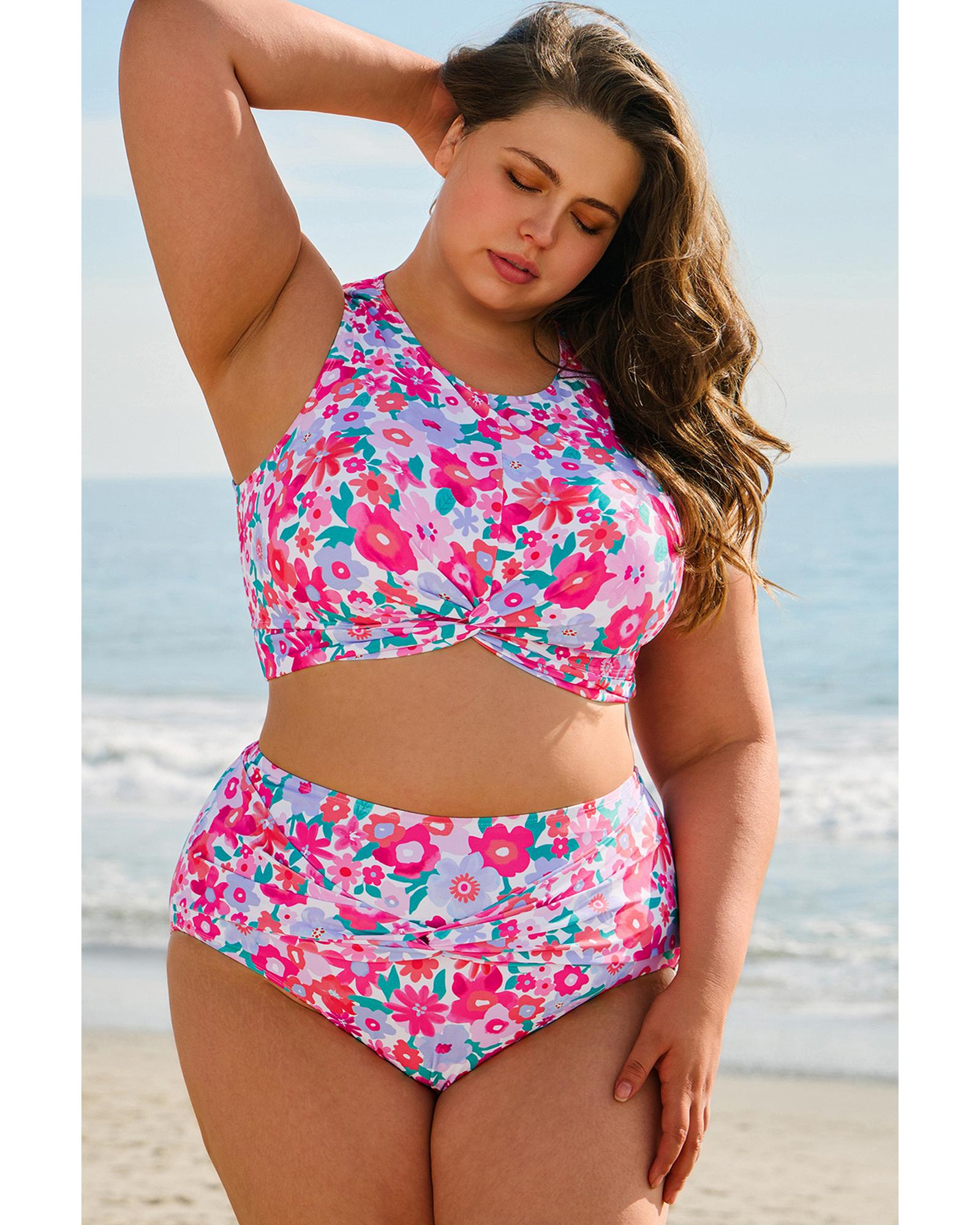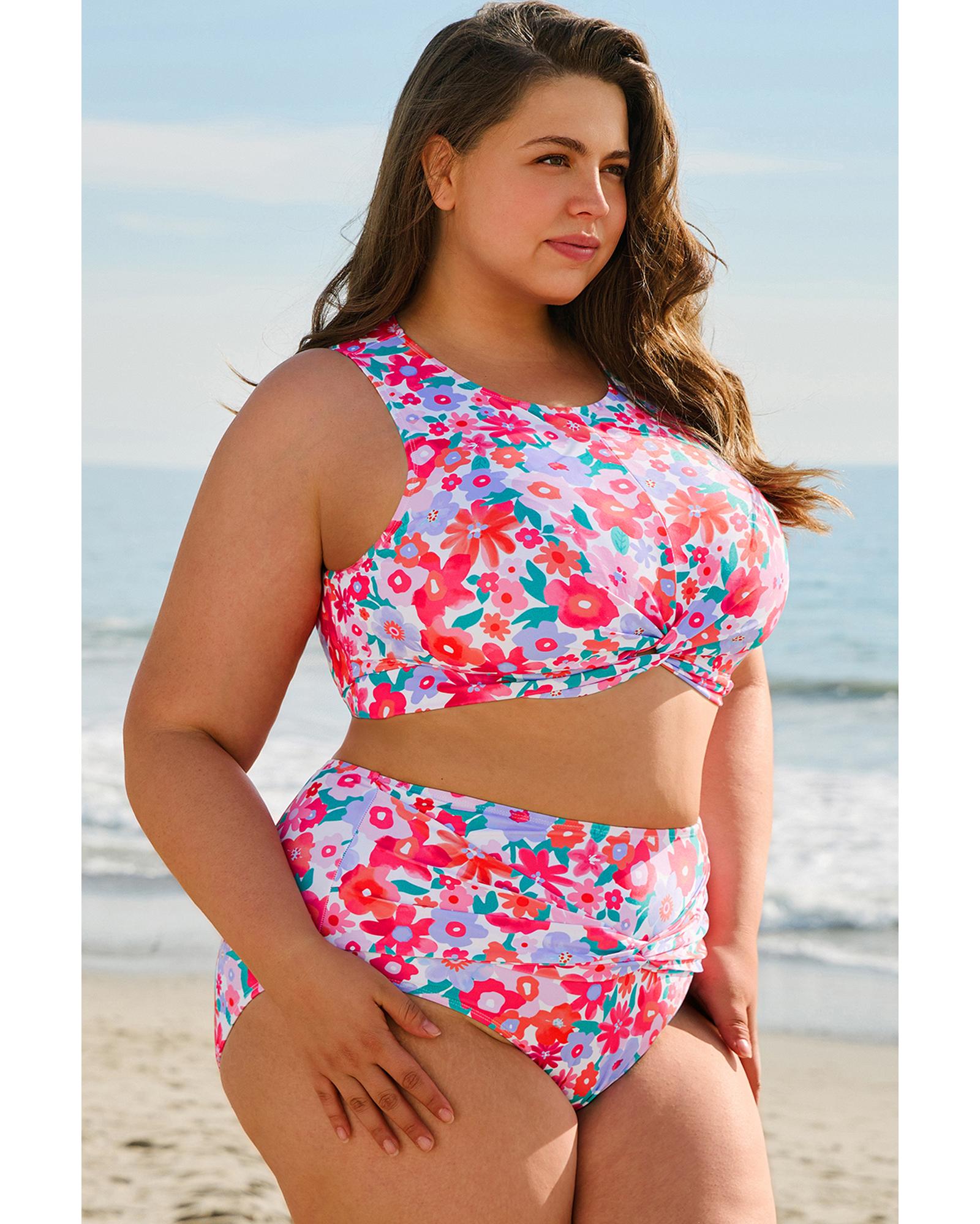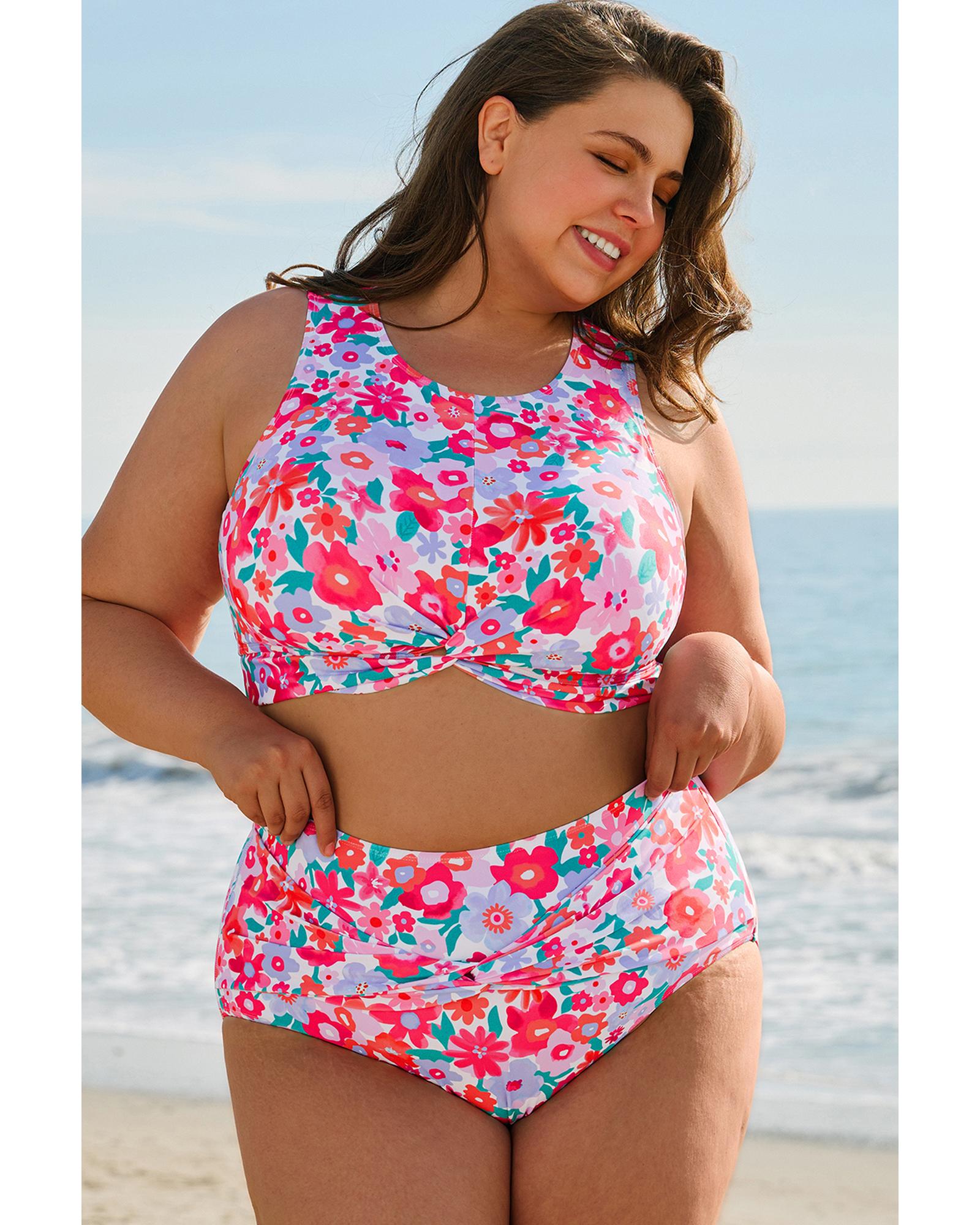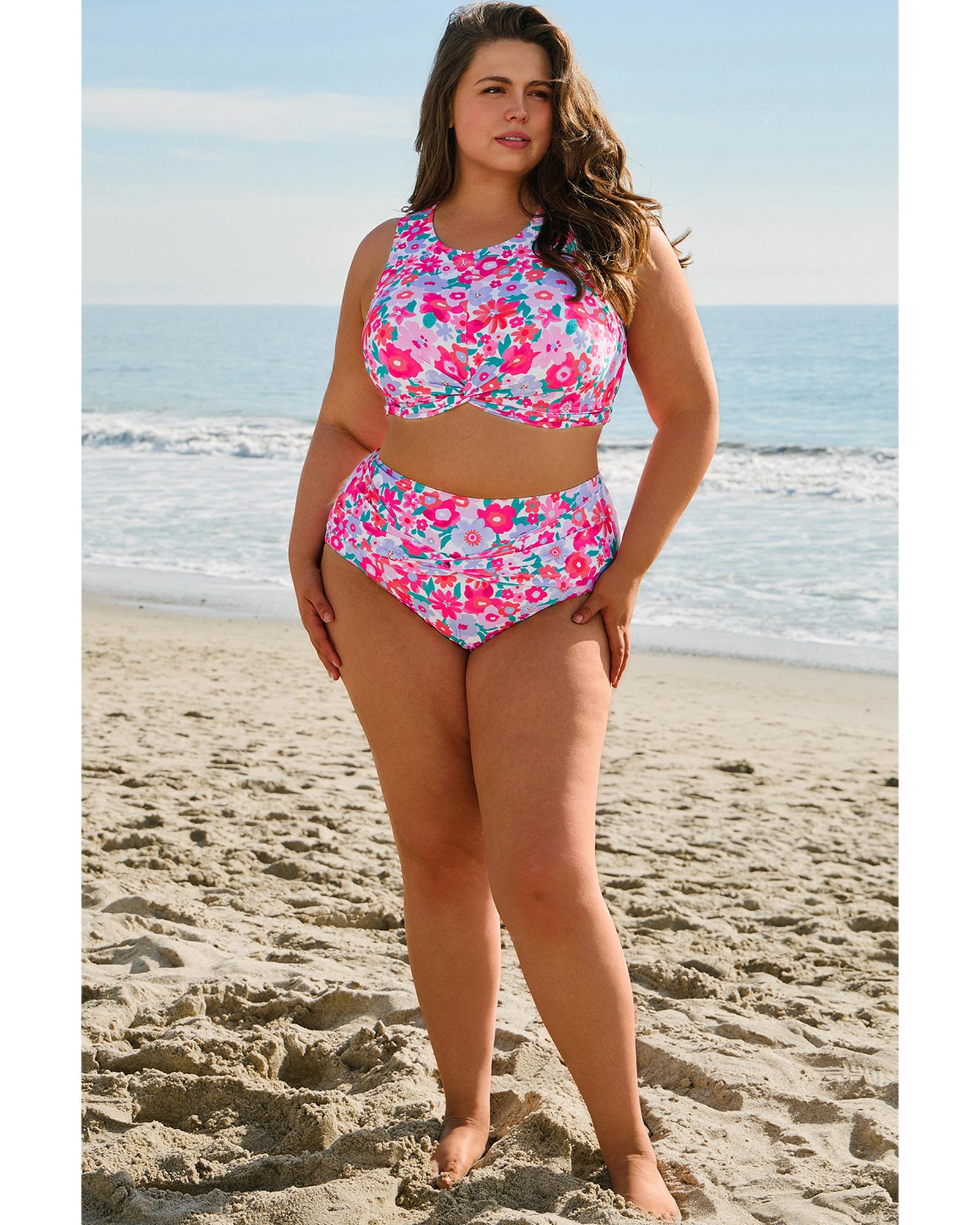 Rose Plus Size Floral Print Twisted High Waist Bikini Set – 4X