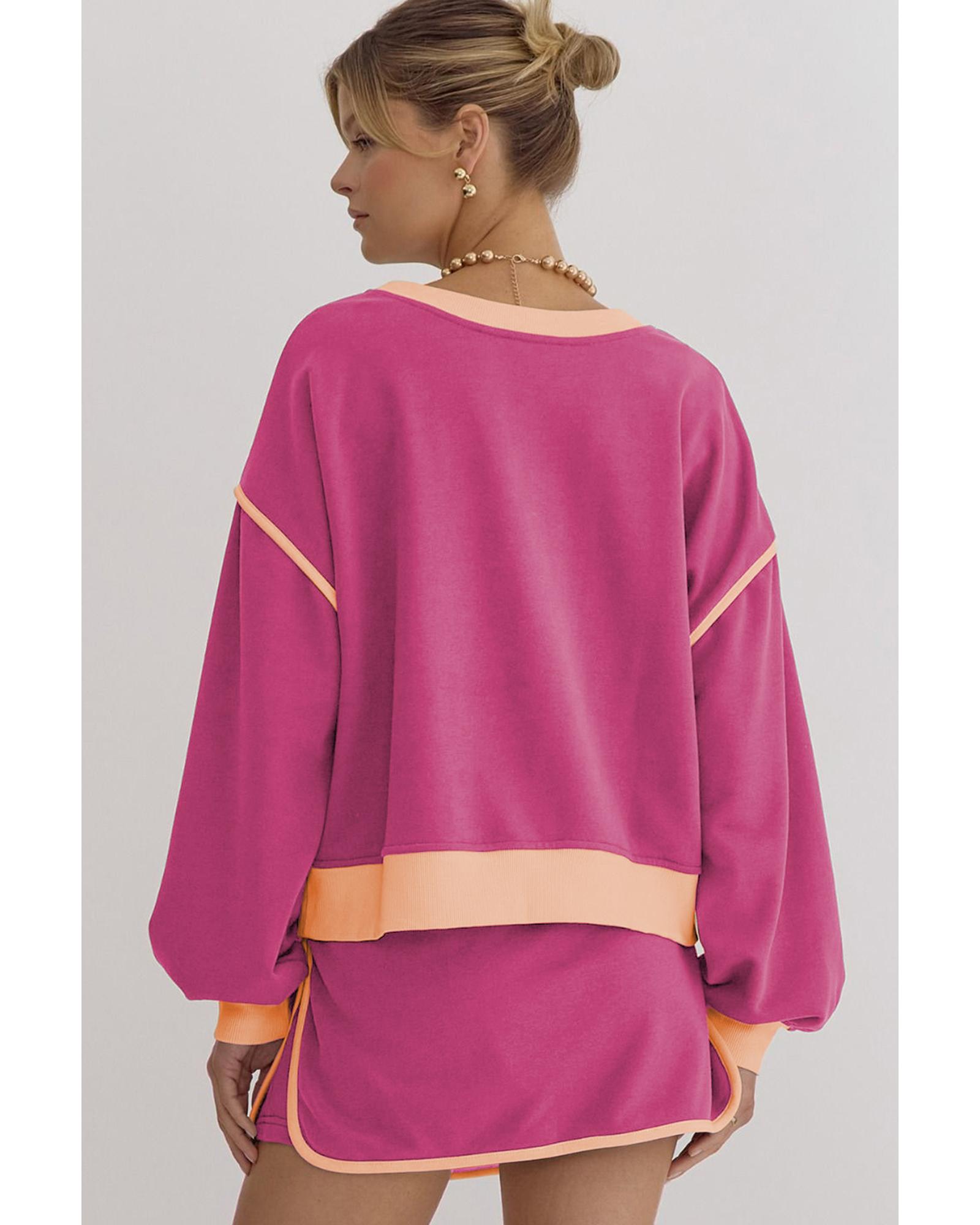 Rose Red Color Contrast Loose Pullover and Lace-up Waist Skort Set – S