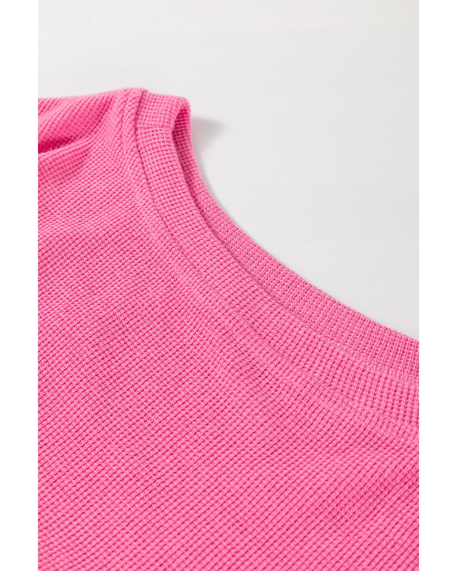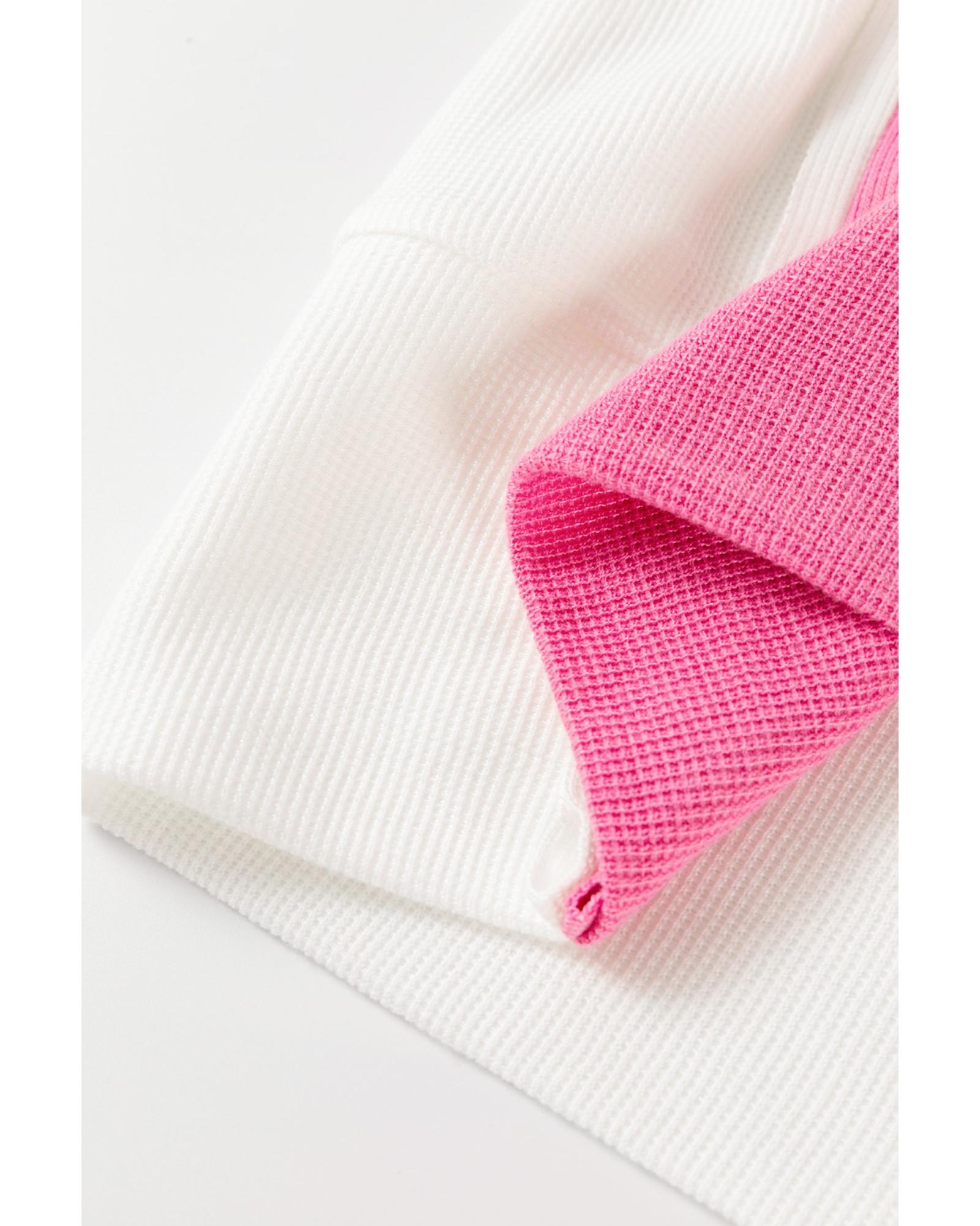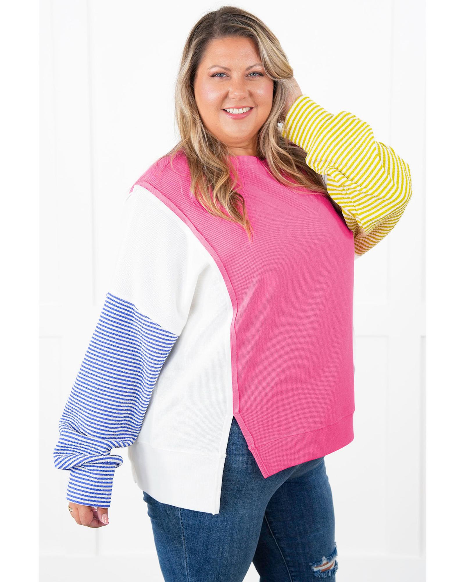 Rose Red Colorblock Patchwork Striped Puff Sleeve Plus Size Top with Slits – 2X