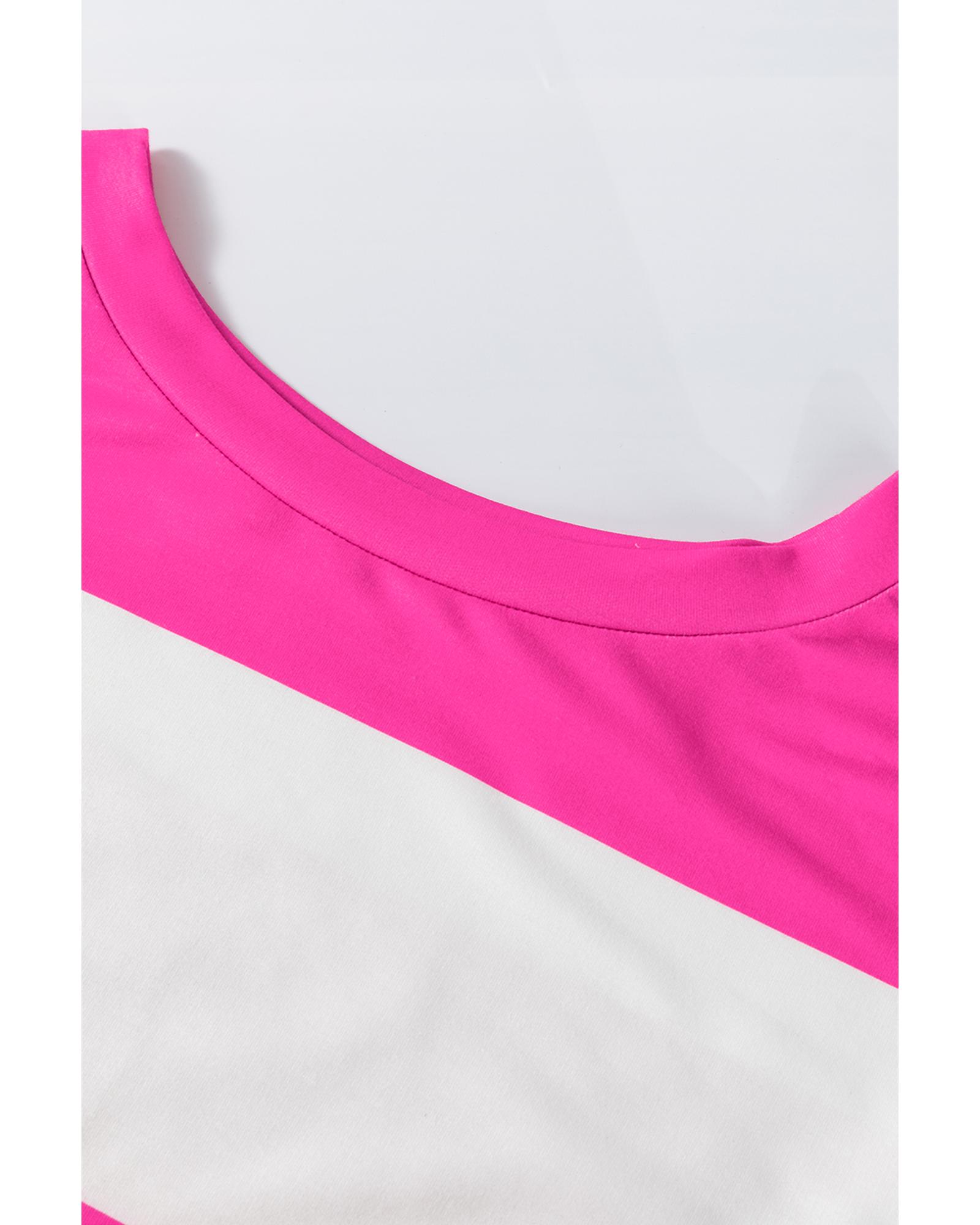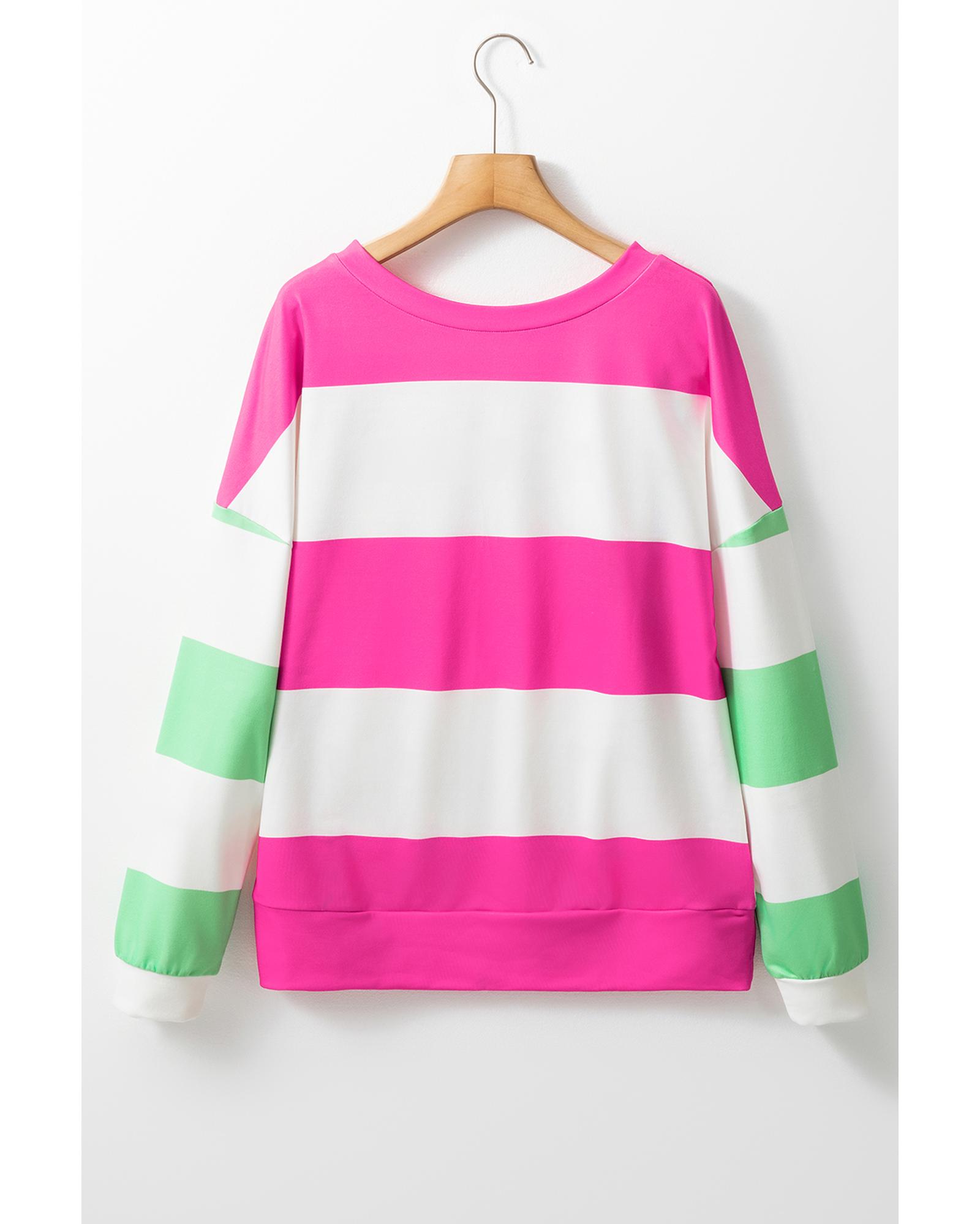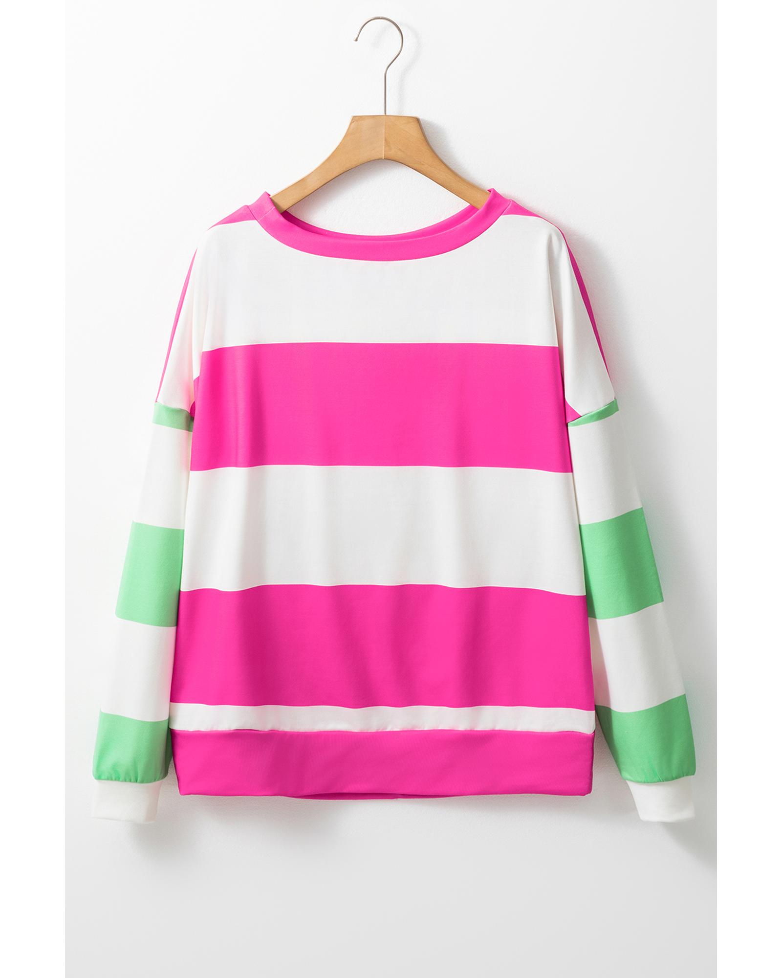 Rose Red Colorblock Striped Drop Shoulder Long Sleeve Top – L
