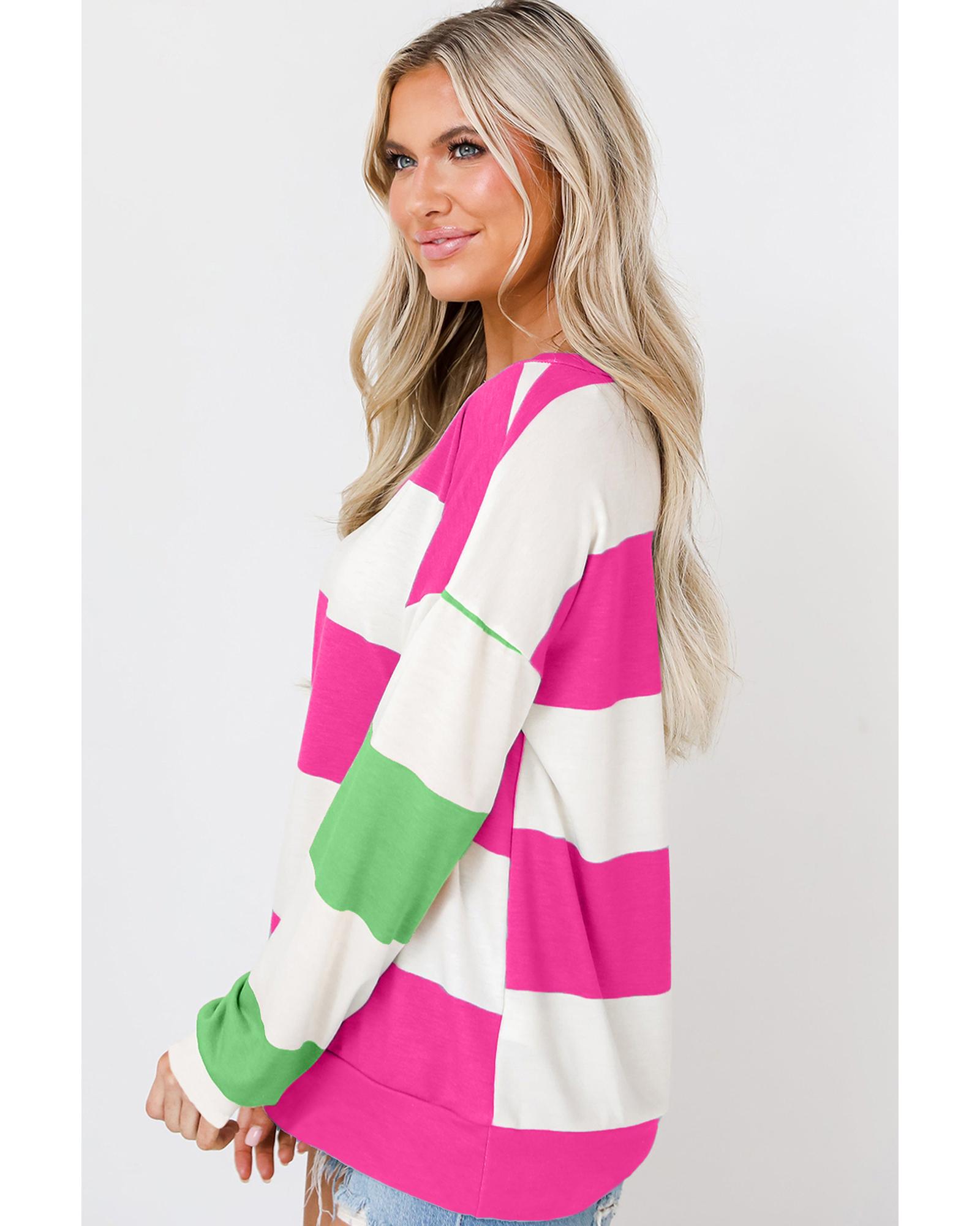 Rose Red Colorblock Striped Drop Shoulder Long Sleeve Top – XL